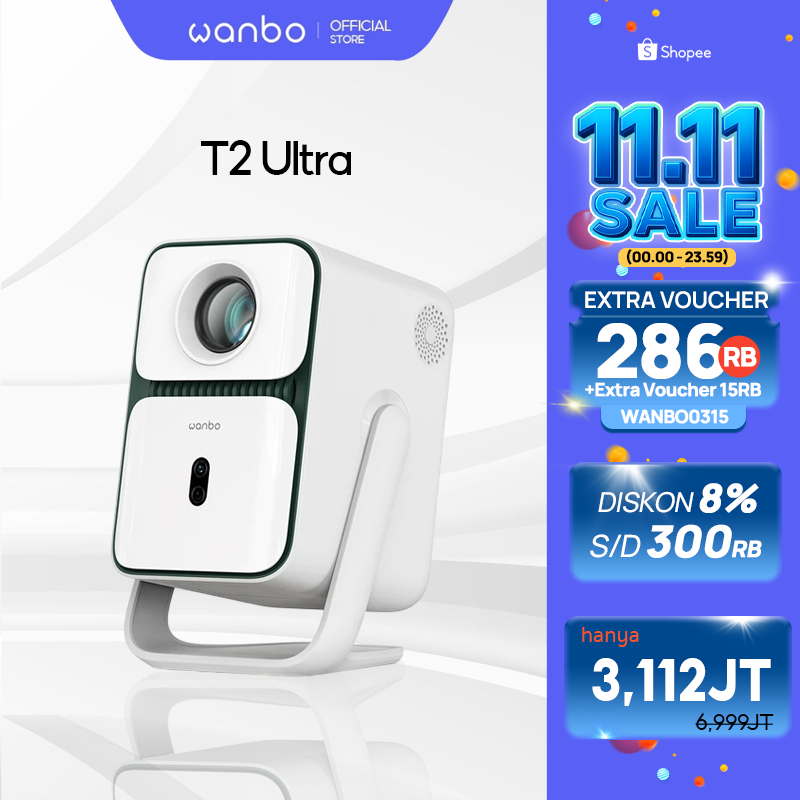 Wanbo T2 Ultra Proyektor Android TV 5W2 Speakers 500ANSI Lumens Auto-focus 1080P 120° Rotating Projection Android 11