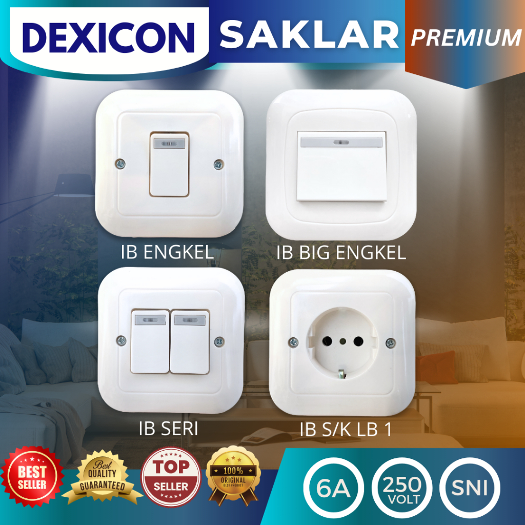 SAKLAR LAMPU INBOW ENGKEL SERI STOP KONTAK SAKELAR LAMPU PUTIH SWITCH LAMP PREMIUM DEXICON SNI