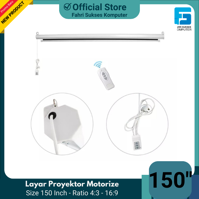 Screen Projector Motorized 150" - Layar Proyektor Remot 150" 4:3