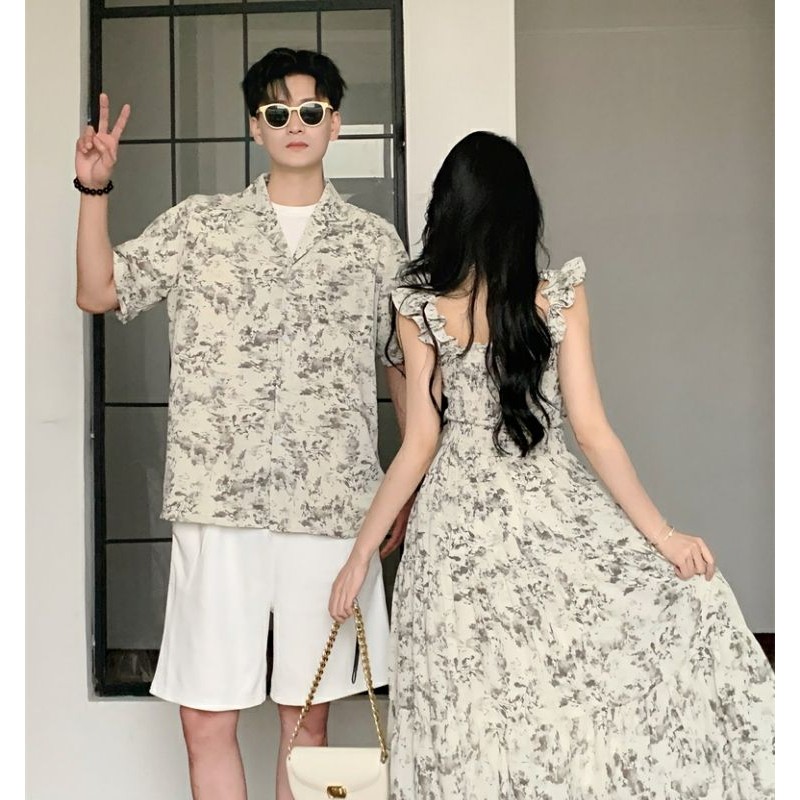 New korean style short sleeve T T-shirt Floral Dress French Style One-Piece Dress