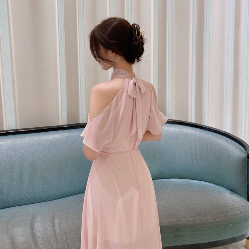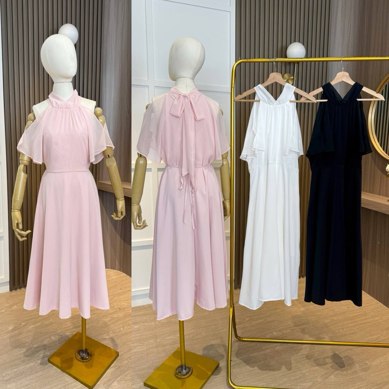[ADA SIZE JUMBO] D1644 PROSPERO KOREAN STYLE VINTAGE MIDI DRESS SIMPLE POLOS PESTA KONDANGAN HALTER NECK