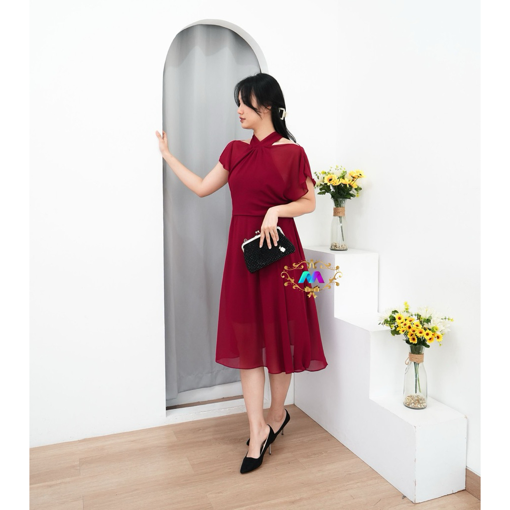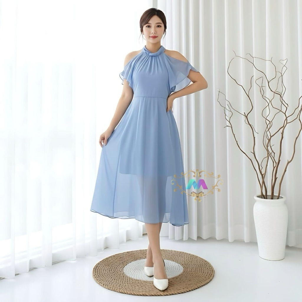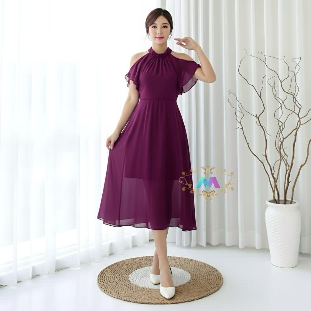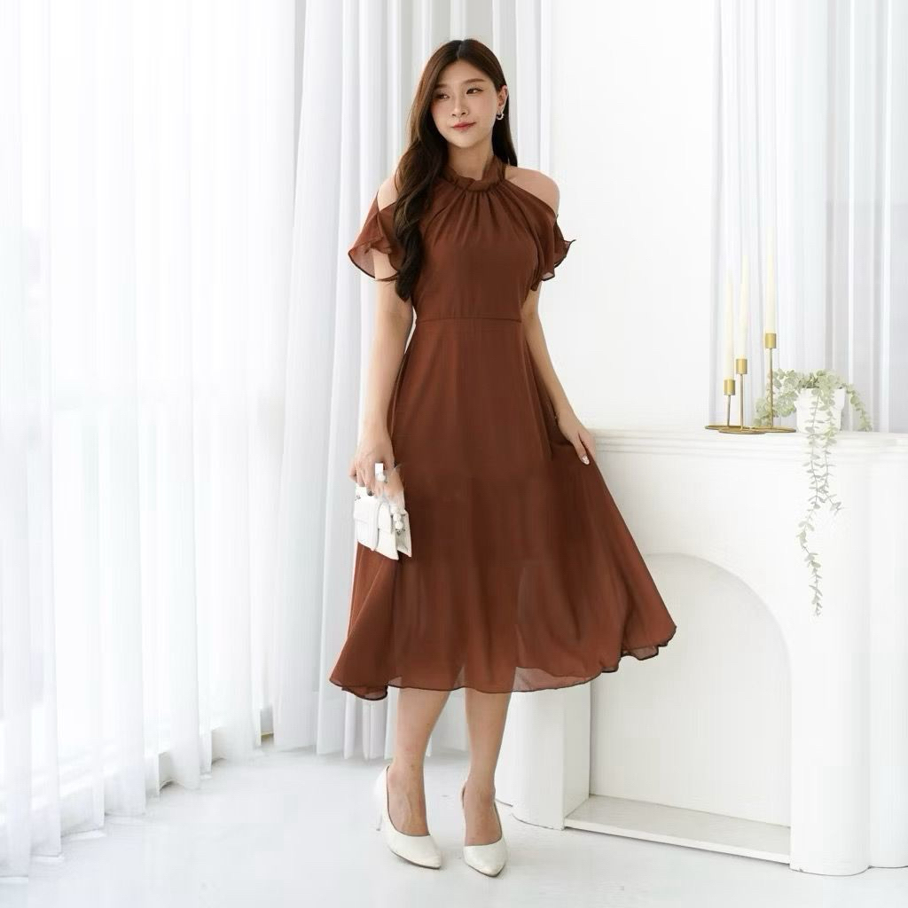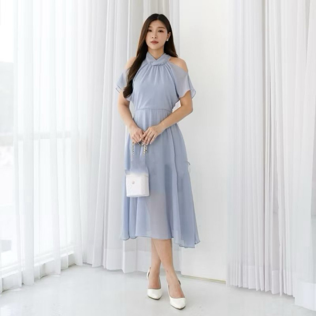 SUNNY dress korean style vintage gaun party natal imlek / pakaian midi dress sheny summer simple elegant