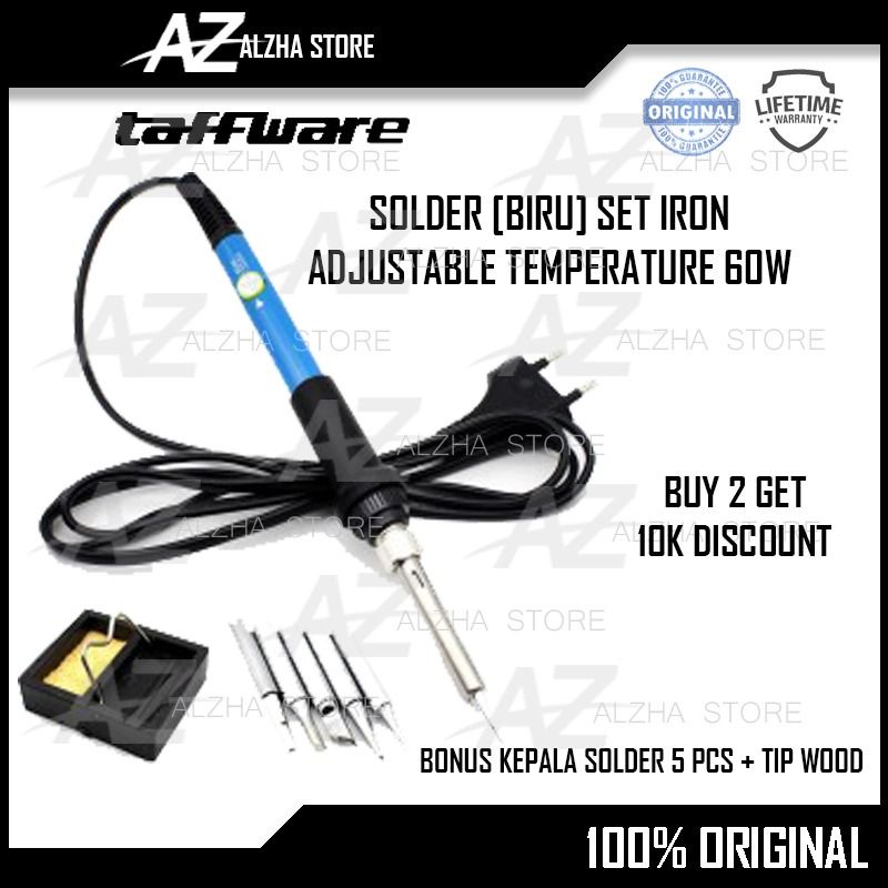 [BEST QUALITY] SOLDER [BIRU] SET IRON ADJUSTABLE TEMPERATURE 60W WITH BONUS