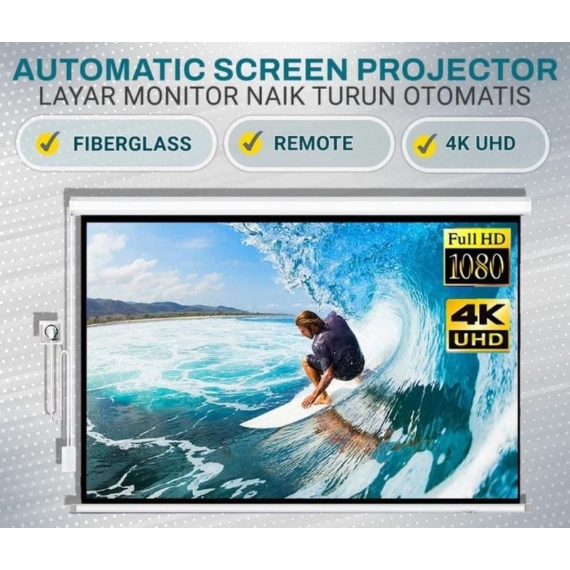 Screen Projector Motorized 200" Inch - Layar Proyektor Elektrik/Otomatis Lebar 400 cm x Tinggi 300 cm Rasio 4.3 [ GARANSI 1 TH ]