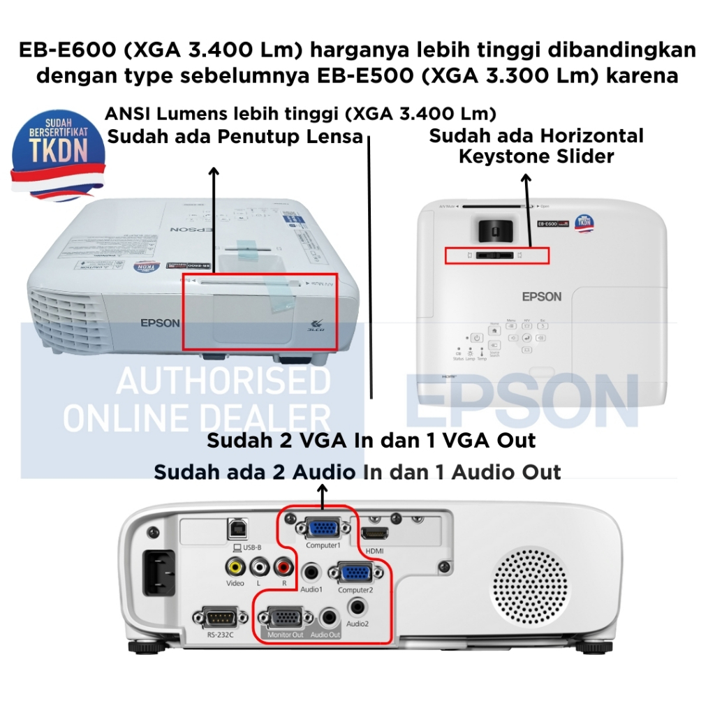 Proyektor EPSON EB-E600 EBE600 EB E600 XGA 3LCD 3400 Lumens TKDN Split Screen VGA HDMI Garansi Resmi