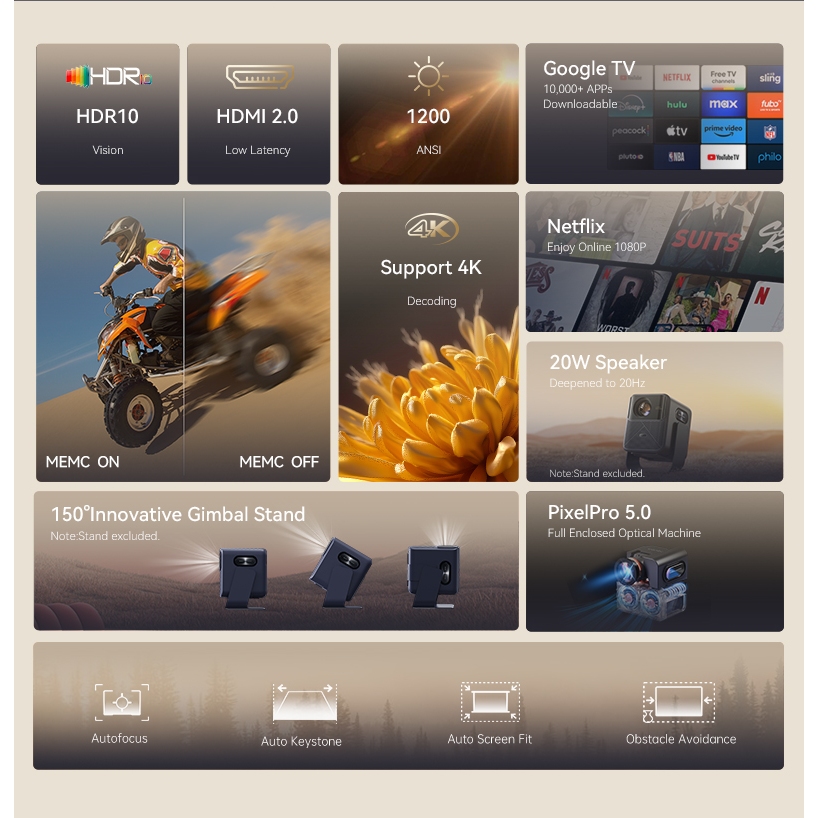 Wanbo New Mozart Pro Smart Projector HD 1080P Auto-Focus 1200 ANSI Lumens 20W Speaker Bluetooth 5.0 Android 11