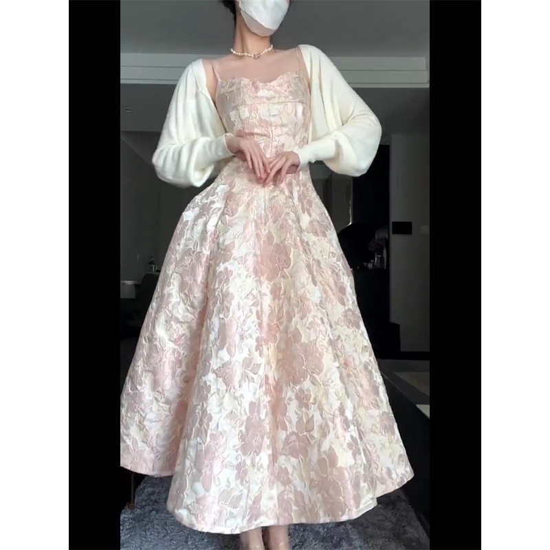 First love pure milk sweet jacquard waist suspender dress women's spring and summer new