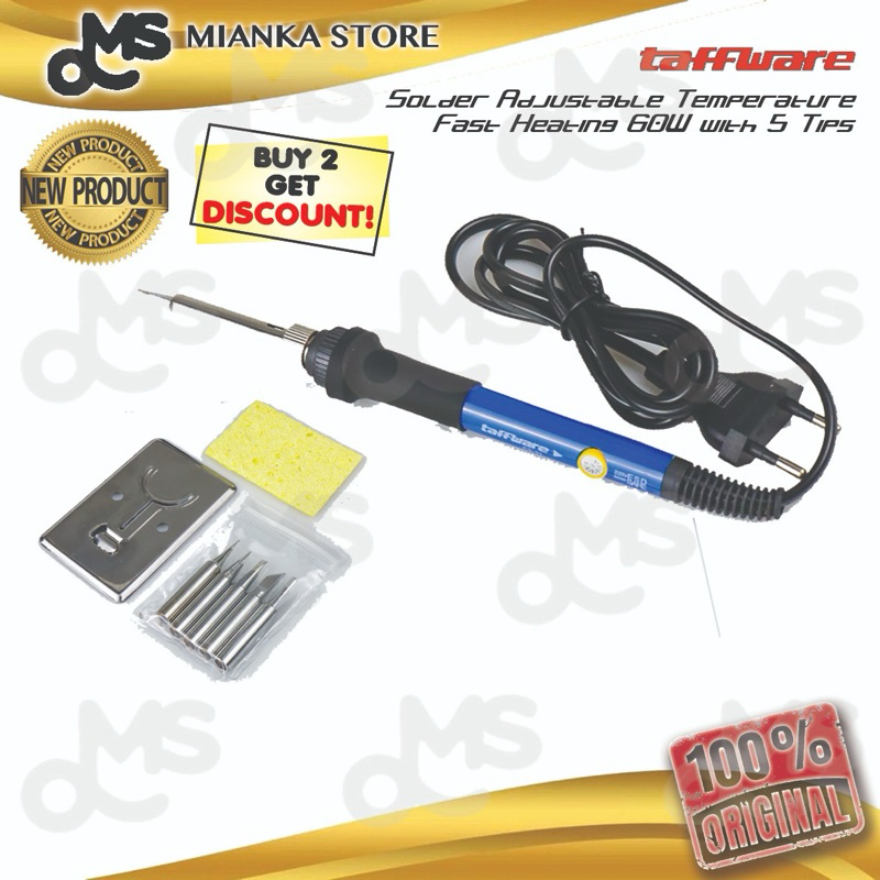 [BEST QUALITY] SOLDER ADJUSTABLE TEMPERATURE FAST HEATING 60W WITH 5 TIPS TAFFWARE [BLUE]