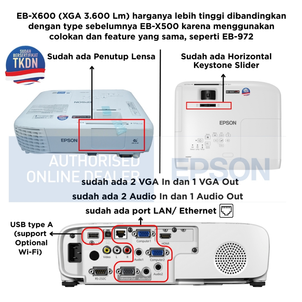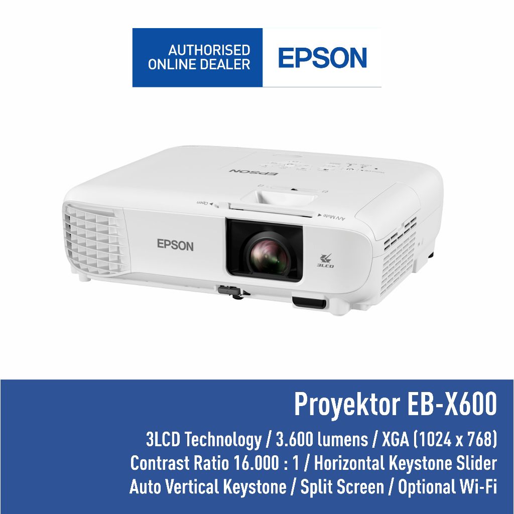 Proyektor EPSON EB-X600 EBX600 EB X600 XGA 3LCD 3600 Lumens TKDN Split Screen VGA HDMI Garansi Resmi