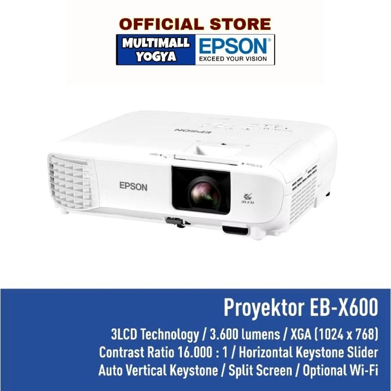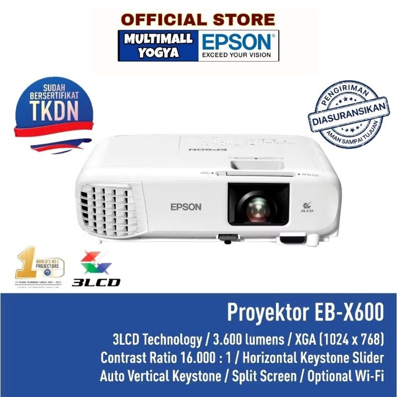 Epson Projector X600 TKDN 3600 Lumens Proyektor EB-X600 XGA (1024x768) 3LCD HDMI Speaker