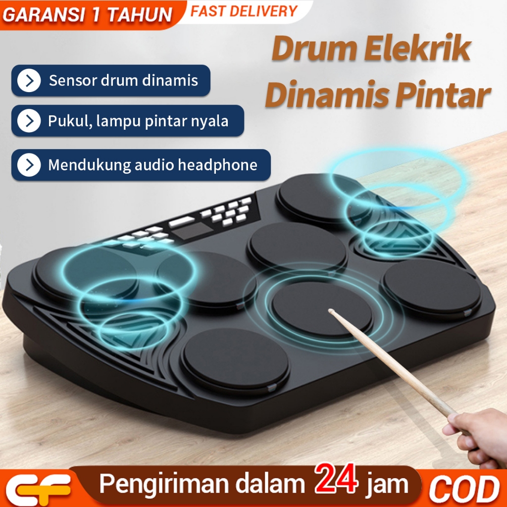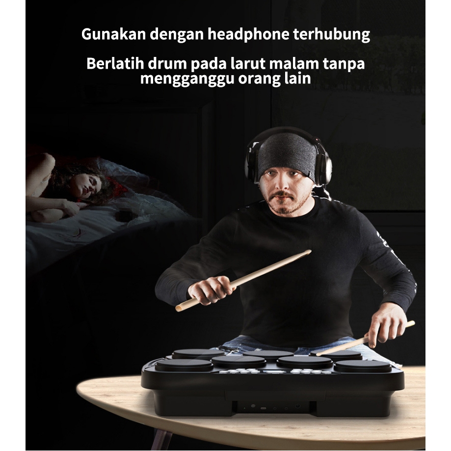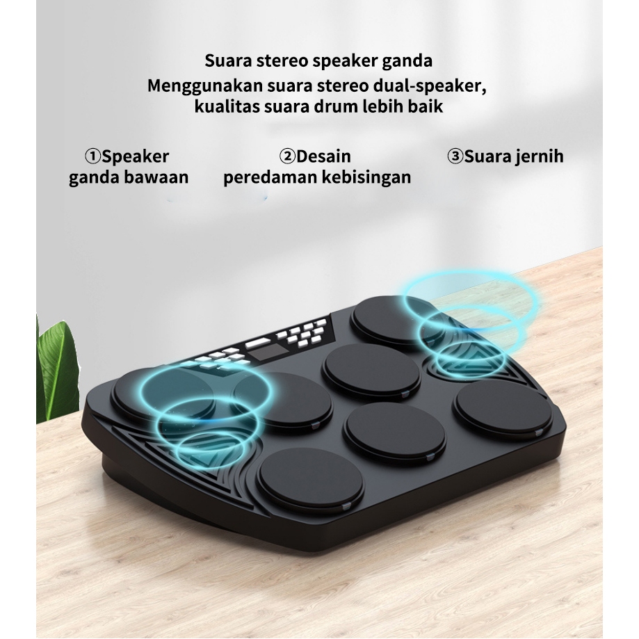 Epicfinds Drum elektrik Drum akustik Portabel Drum pad band Drum elektronik profesional Alat pelatihan drum pemula Koneksi Bluetooth