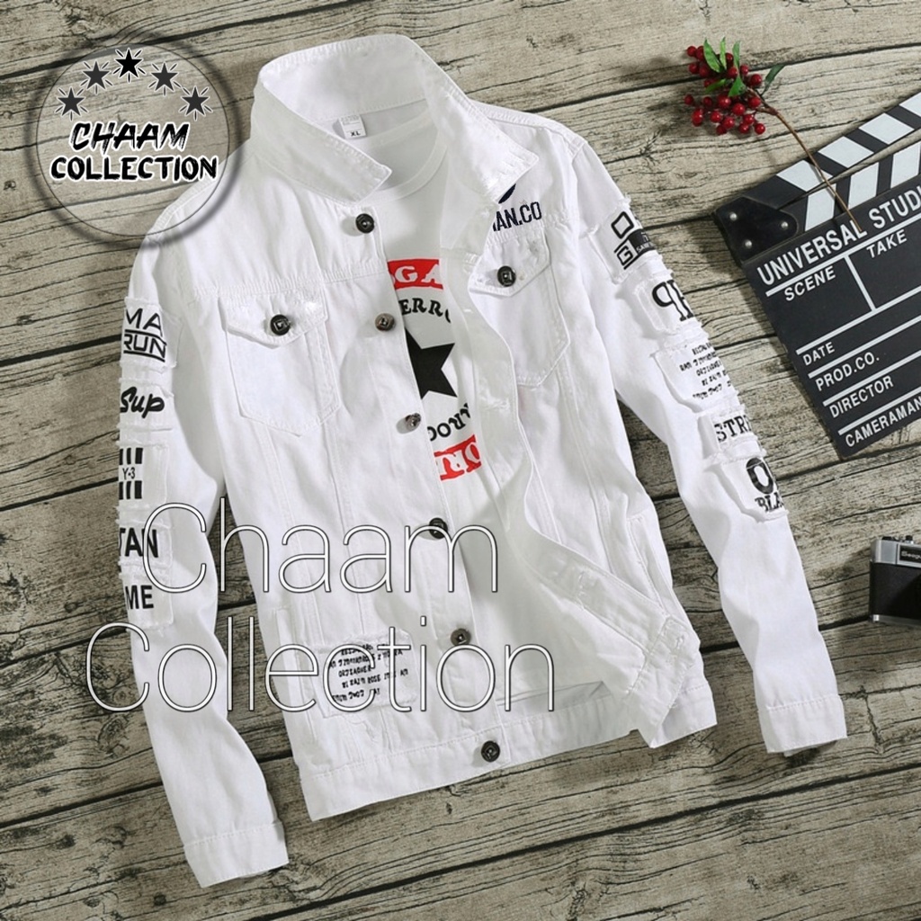 TERLARIS Jaket Jeans Warna Putih| Jacket Denim Korean Style Motif FULL BORDIR|Jaket Denim New Fashion|Jaket Pria WHITE
