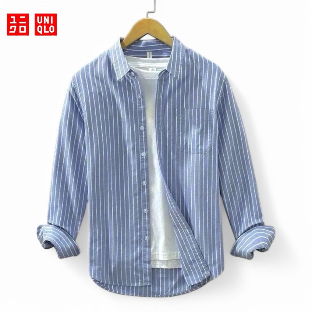 TERLARIS Kemeja Salur Pria Lengan Panjang Motif Salur Kecil Full Katun Premium Kemeja Stripe Kasual-Formal