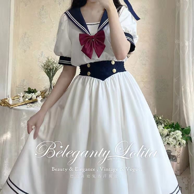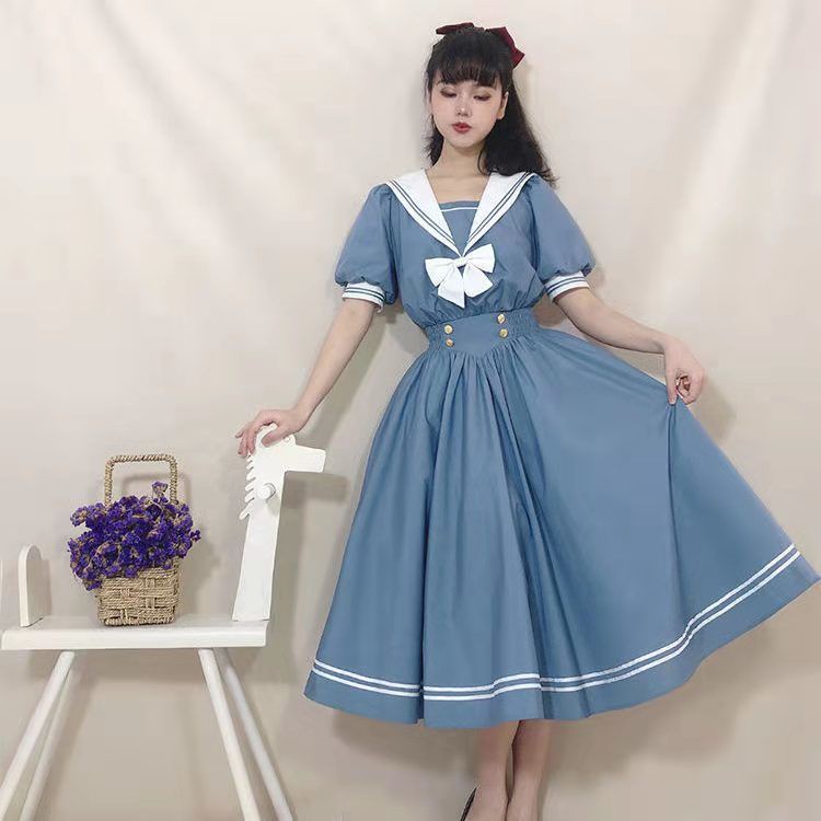 Japanese StylejkSailor Collar Stitching Dress Female Student Korean Style All-Matching Slimming
