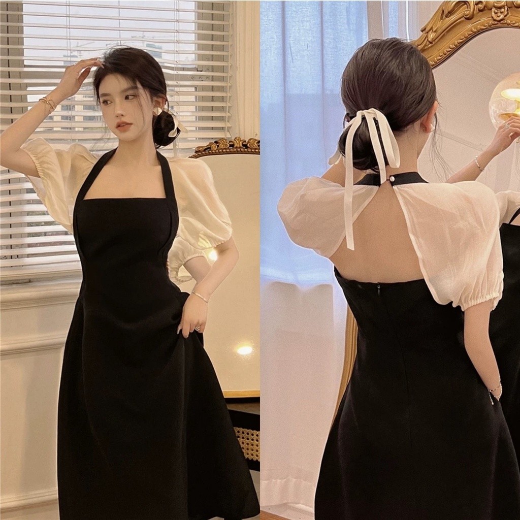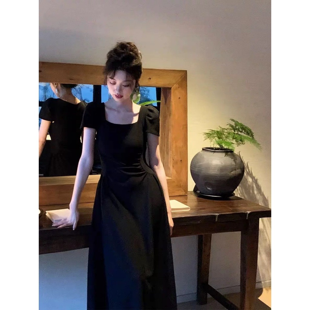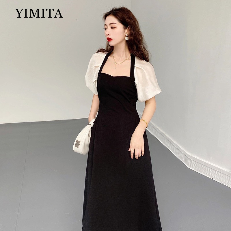 YIMITA midi dress hitam wanita kekinian korean style princess dress tanpa lengan press body dress pantai pesta plus size