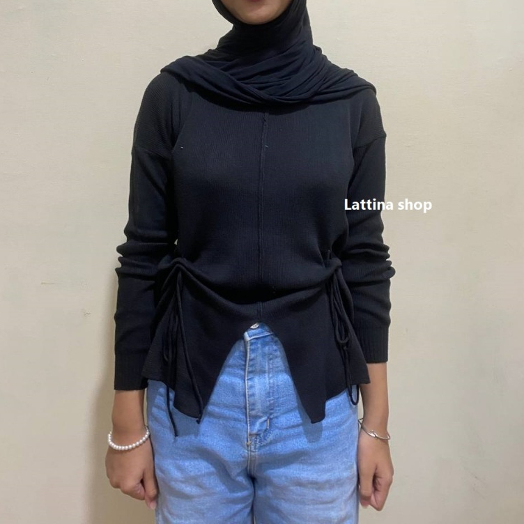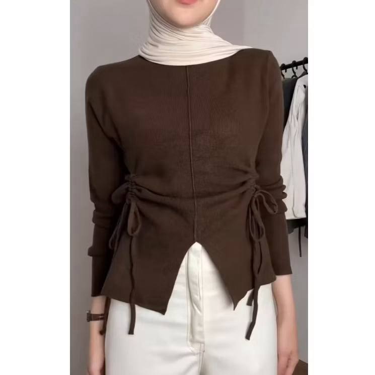 BAJU KEKINIAN WANITA Hana Top Knitwear Rajut Premium Wanita Atasan Baju Dengan Desain Tali Pinggang Khas