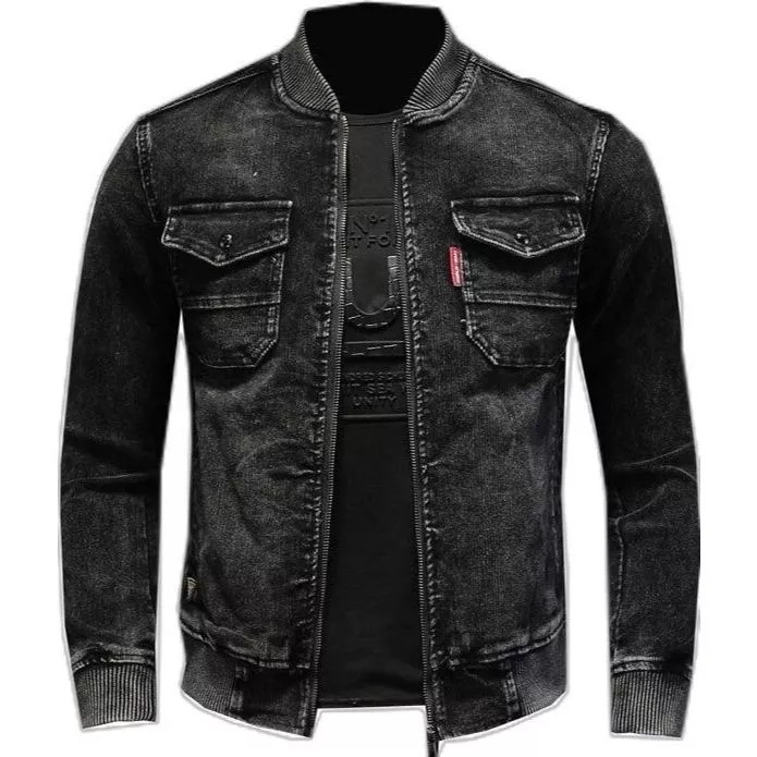 TERLARIS Jaket Bomber Jeans || Jaket Fashion Pria Kasual || Jaket Resleting Bomber Full Hitam