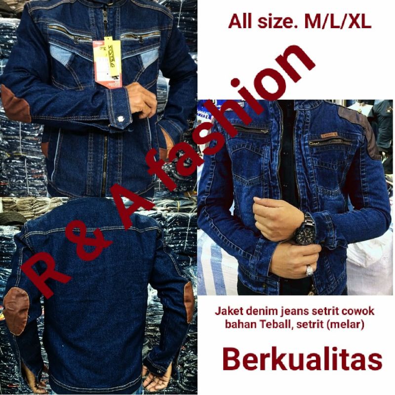 TERLARIS Jaket Jeans Setrit Cowok Dewasa Navy S-XXL