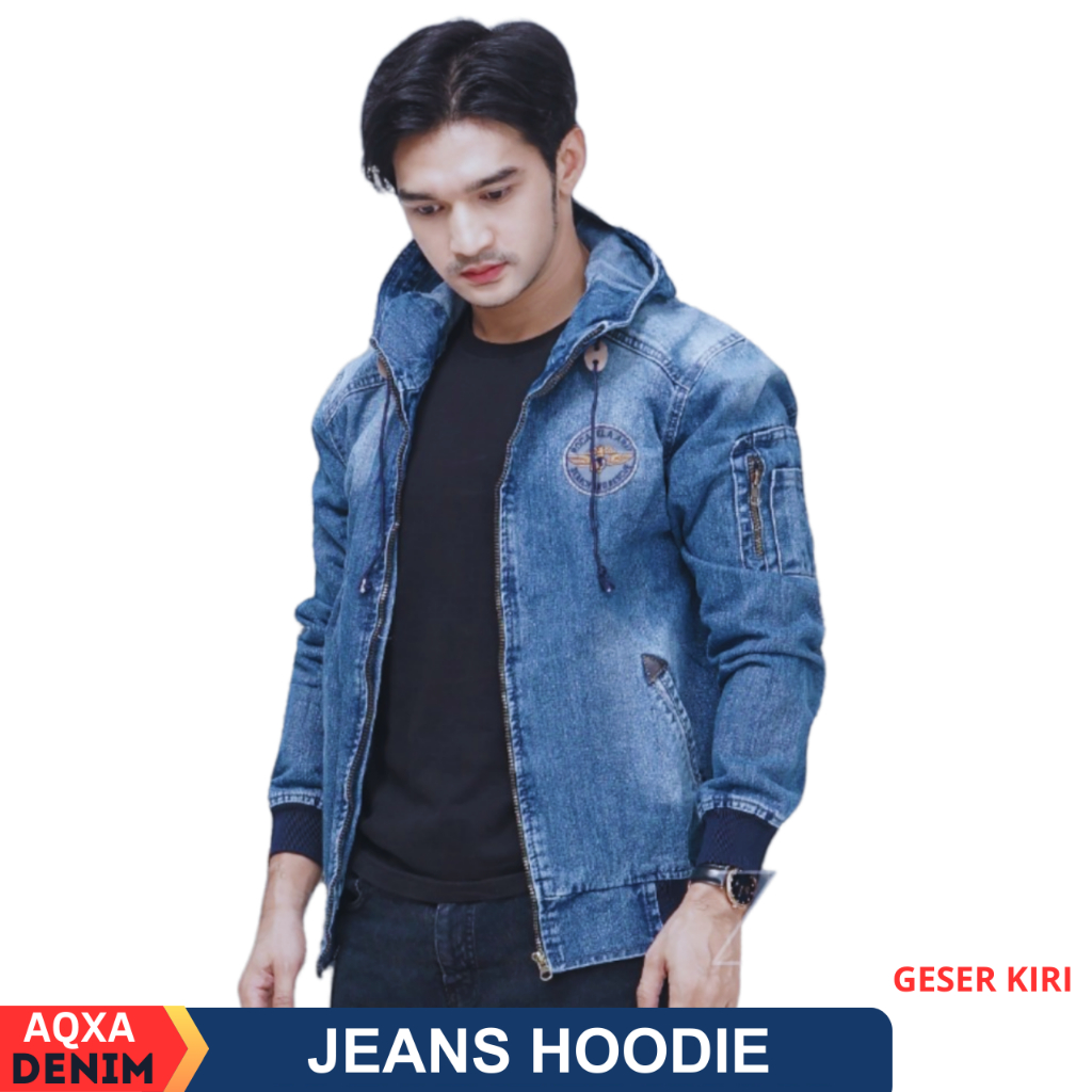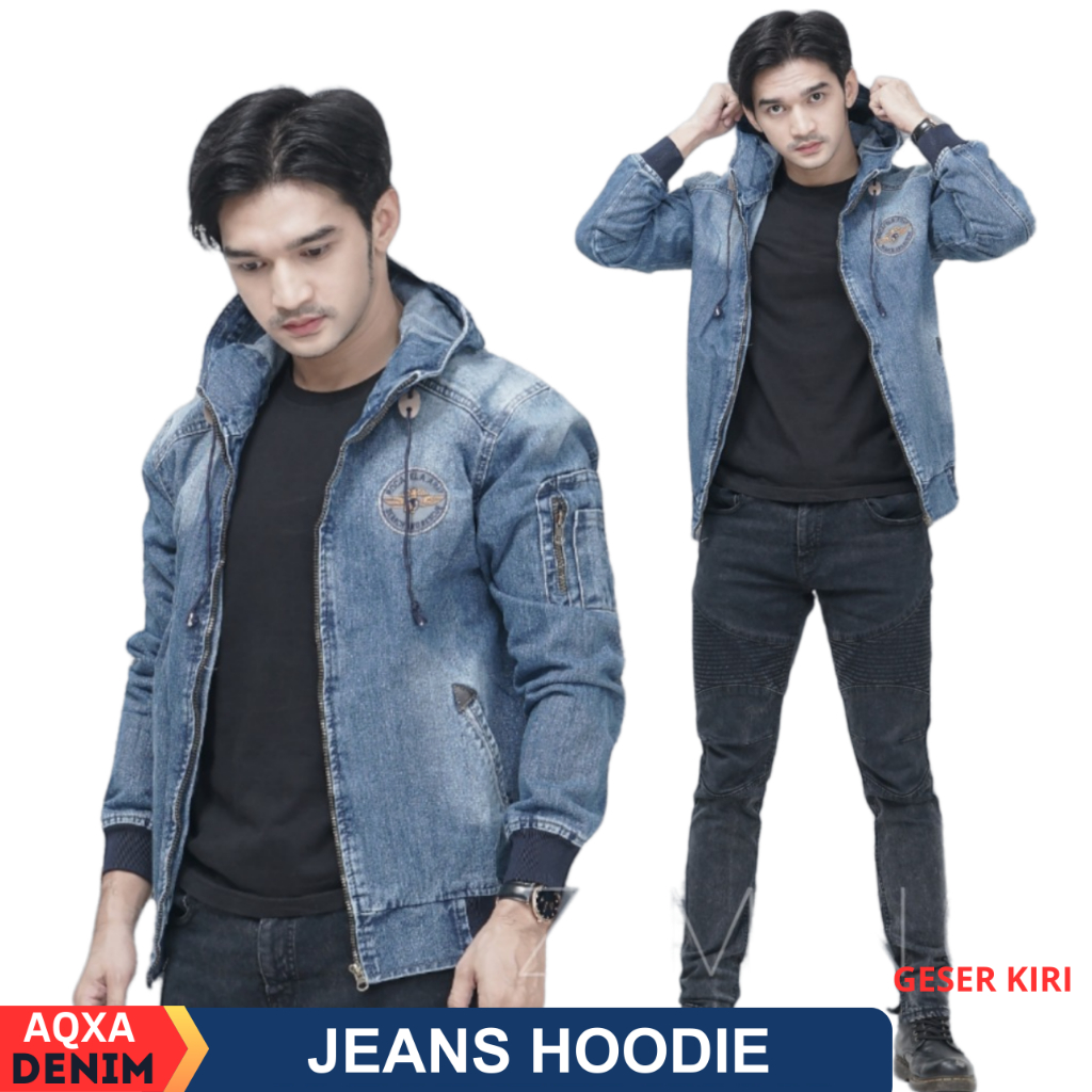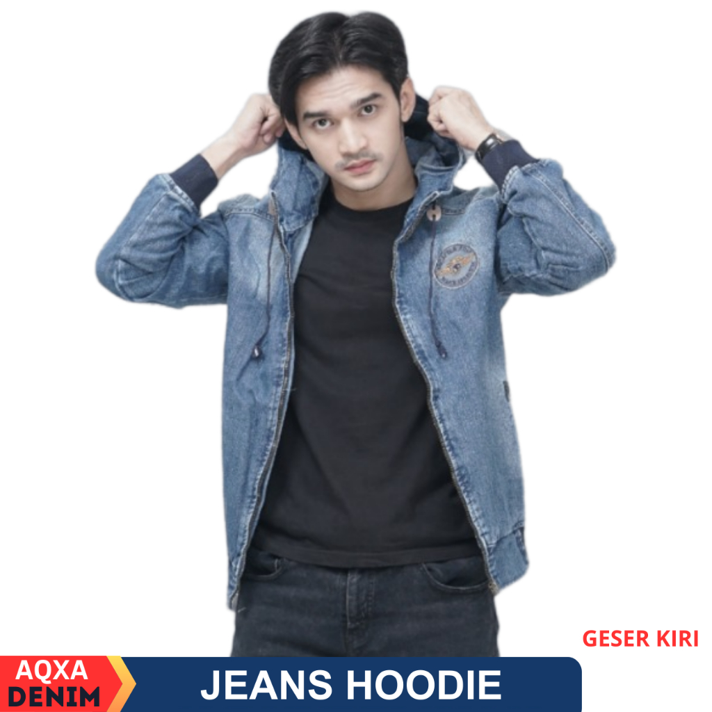 TERLARIS AQXA Jaket Jeans Denim Hoodie Pria Murah Keren Buat Nongkrong