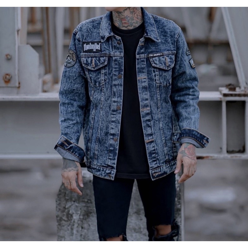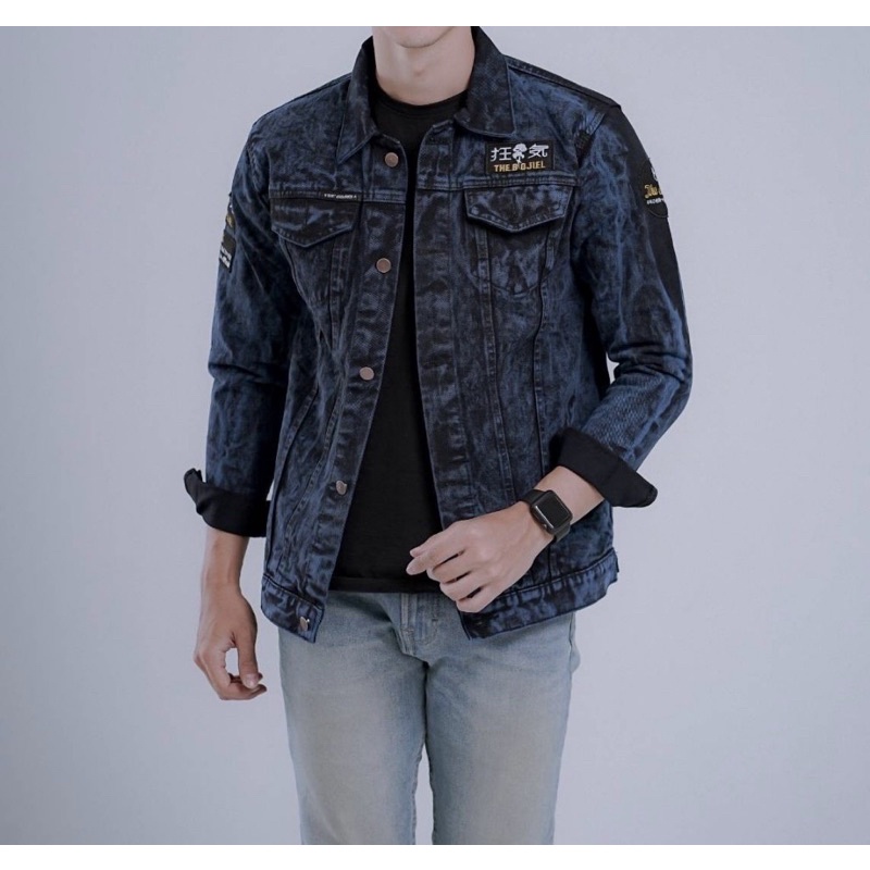 TERLARIS Jaket Jeans Path Jeans Trucker Denim Blue Denim Jin Hitam Biru Wash Jins Motor Pria Keren Vintage
