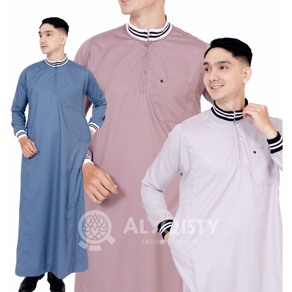 TERLARIS Jubah Rib Zipper Gamis Muslim Pria Slimfit Dewasa