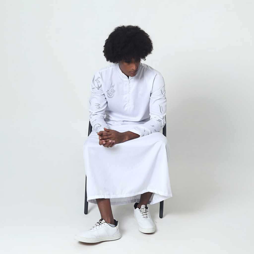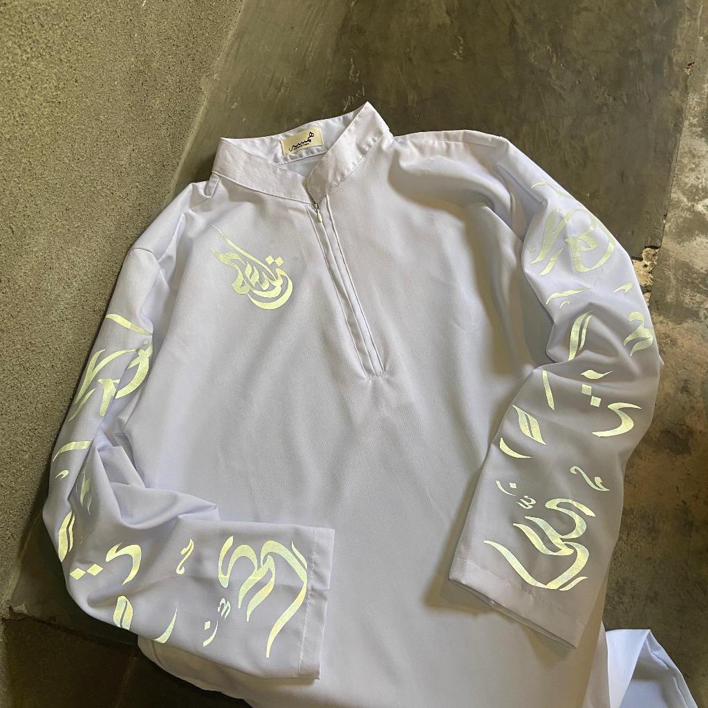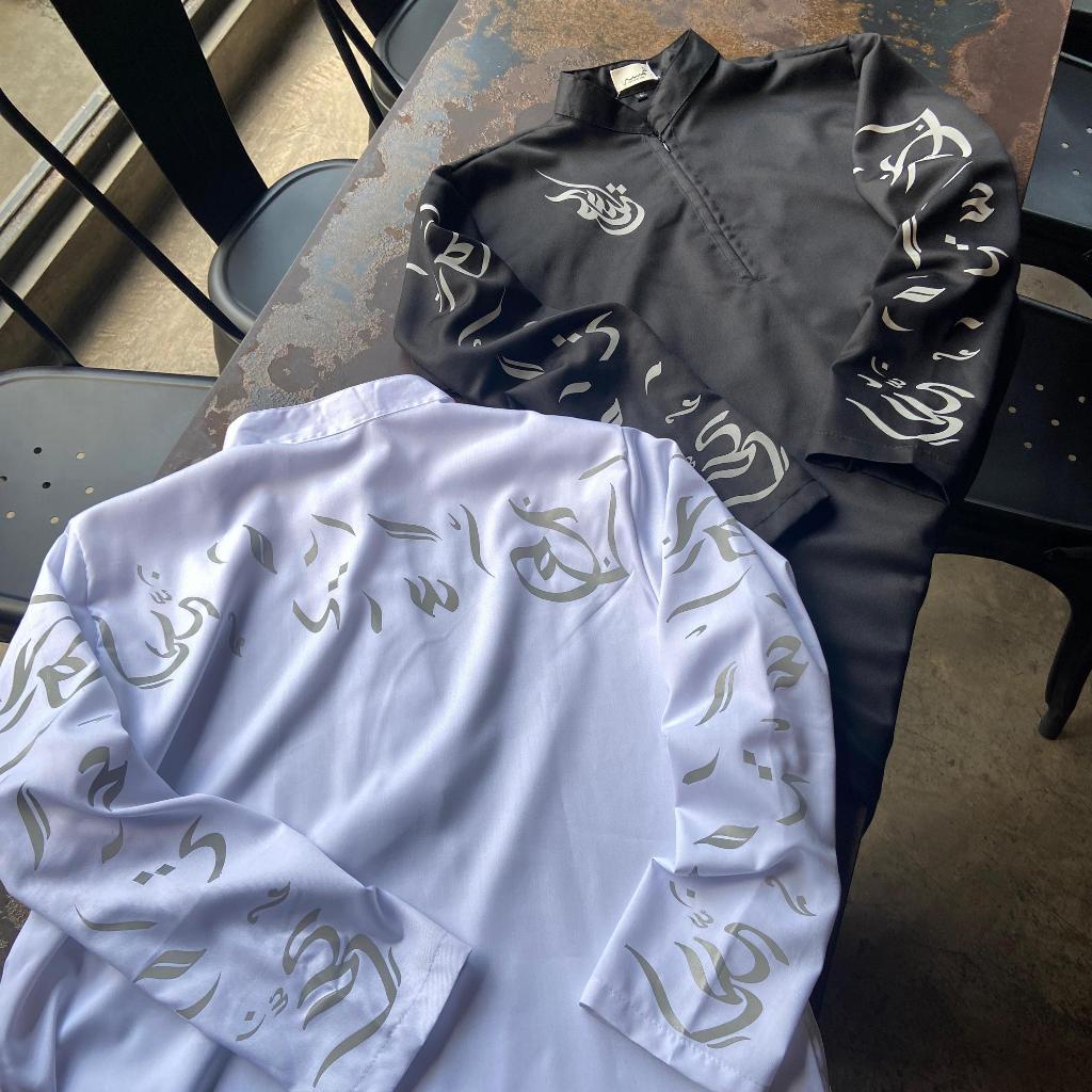 TERLARIS HAMASAHLABELL - GAMIS KALCER HITAM PUTIH DEWASA GAMIS PRIA REFLECTIVE JUBAH PRIA SLIMFIT LINE MENYALA