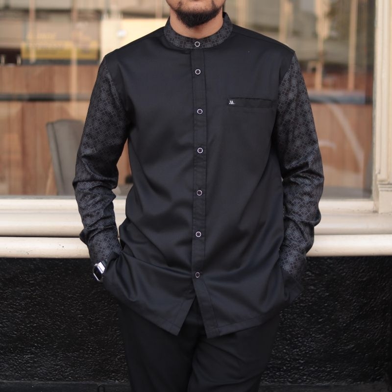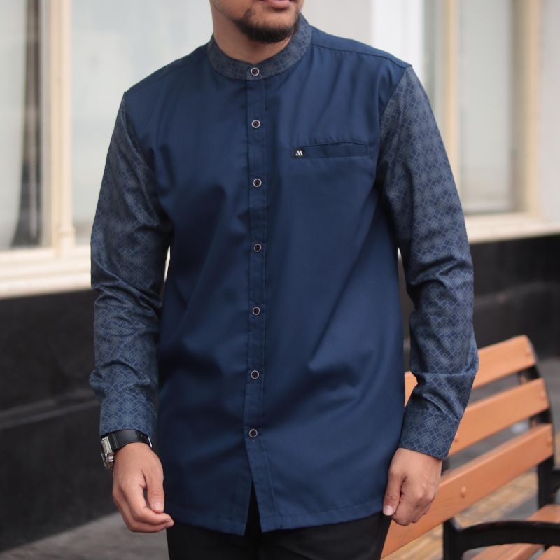 TERLARIS Kemeja Sumando-kemeja pria lengan panjang motif embos full kancing