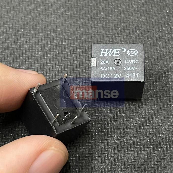 SALE !! RELAY DC 12V 20A 5 KAKI HWE HITAM 5 PIN 12 VOLT (KUALITAS BAGUS 20A) - WARNA TERMURAH