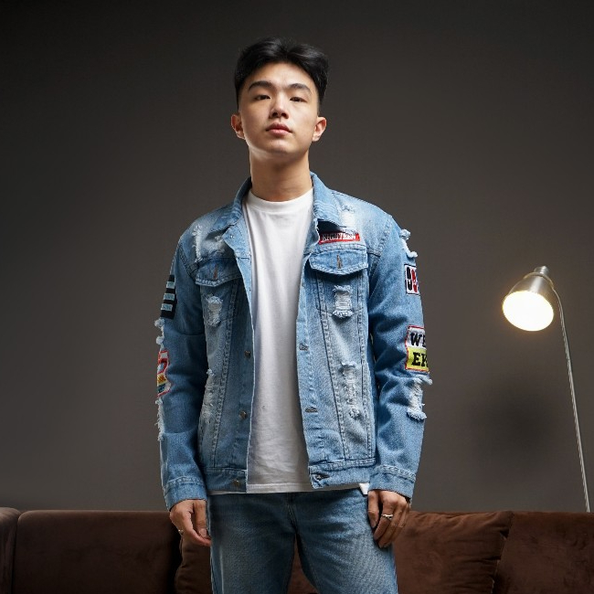 TERLARIS JAKET JEANS PRIA MODEL TERBARU JEANS SOBEK TEMPEL EMBLEM JAKET JEANS COWOK CEWEK BANDUNG MURAH DISTRO
