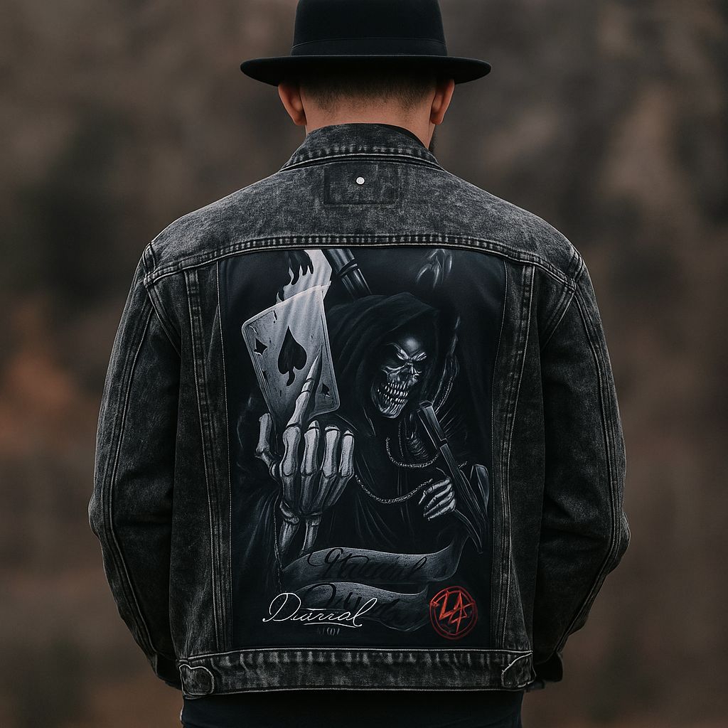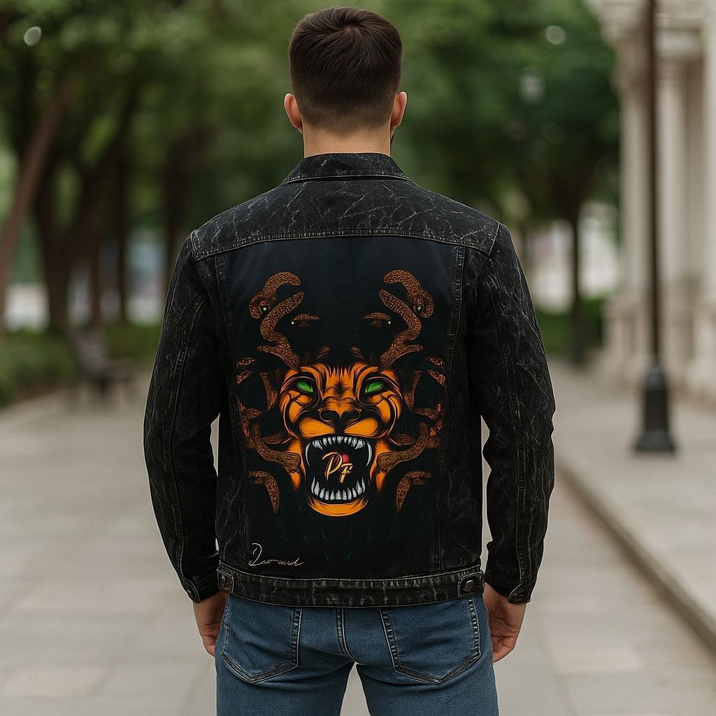 TERLARIS Jaket Denim Pria Bordir Naga Merah Premium | Fashion Streetwear Kasual Keren
