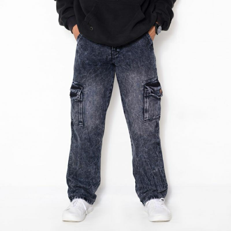 TERLARIS CELANA CARGO JEANS PRIA MODEL SETANDAR BAGGY,CELANA CARGO DENIM SETANDAR LURUS