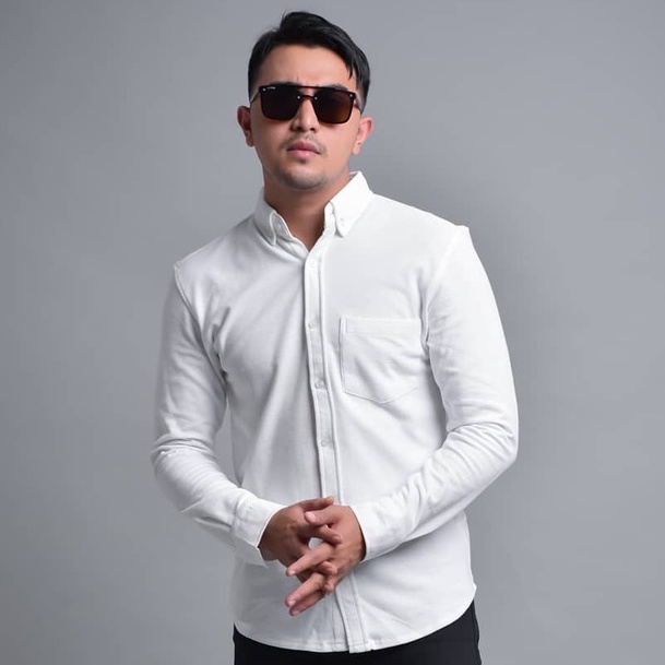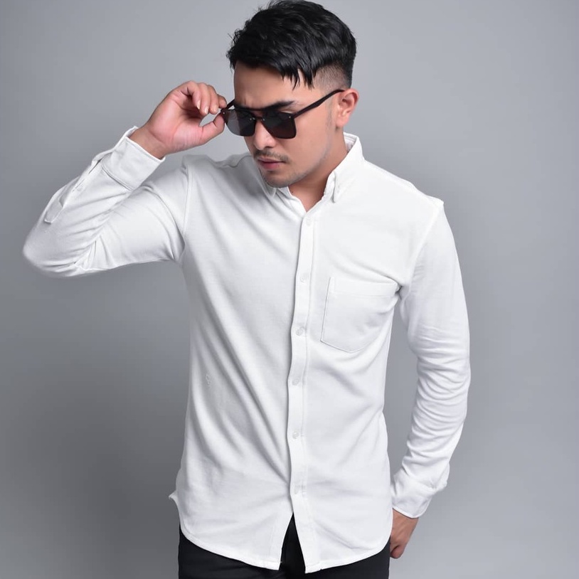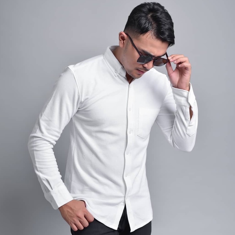 TERLARIS Premium Kemeja Pria Pique Lengan Panjang Slimfit Casual Hitam Putih Varian Warna