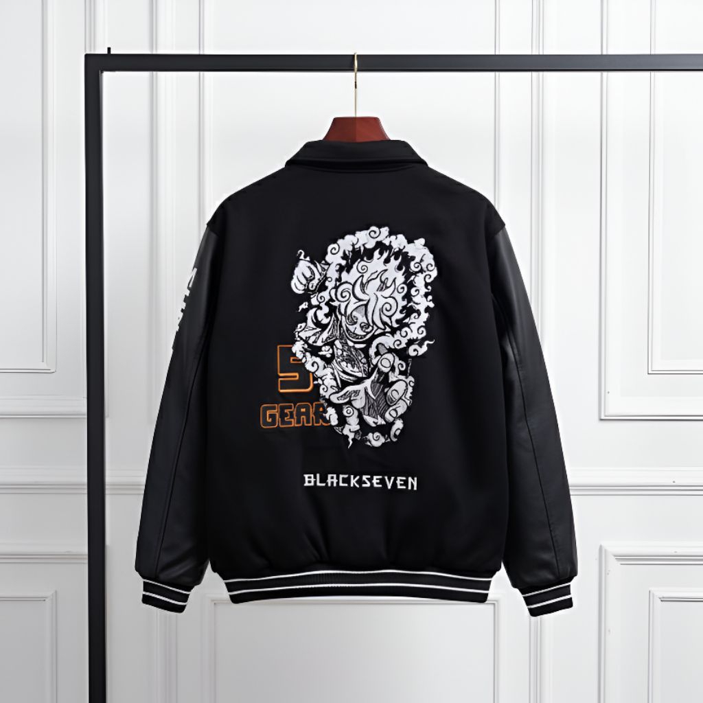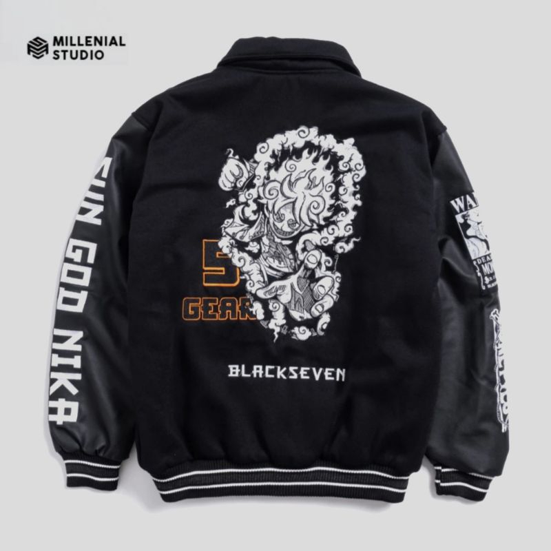TERLARIS VARSITY JACKET ONE PIECE GEAR 5 LUFFY BLACK | SUN GOD NIKA JAKET BASEBALL BORDIR ORIGINAL KULIT SINTETIS UNISEX