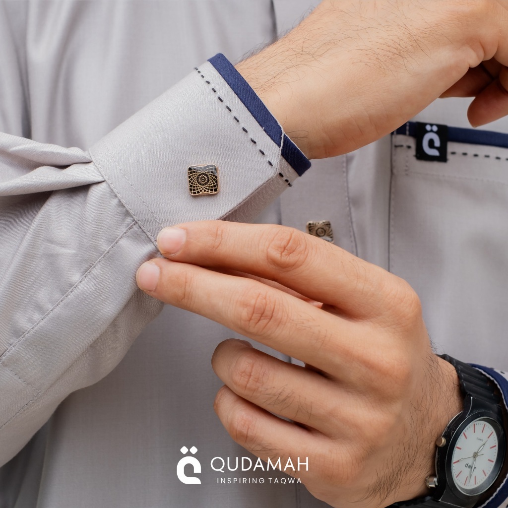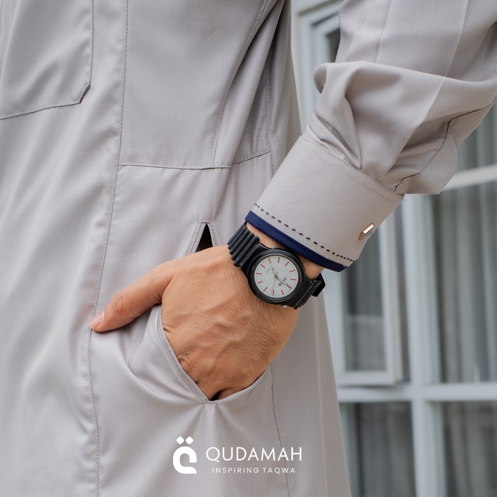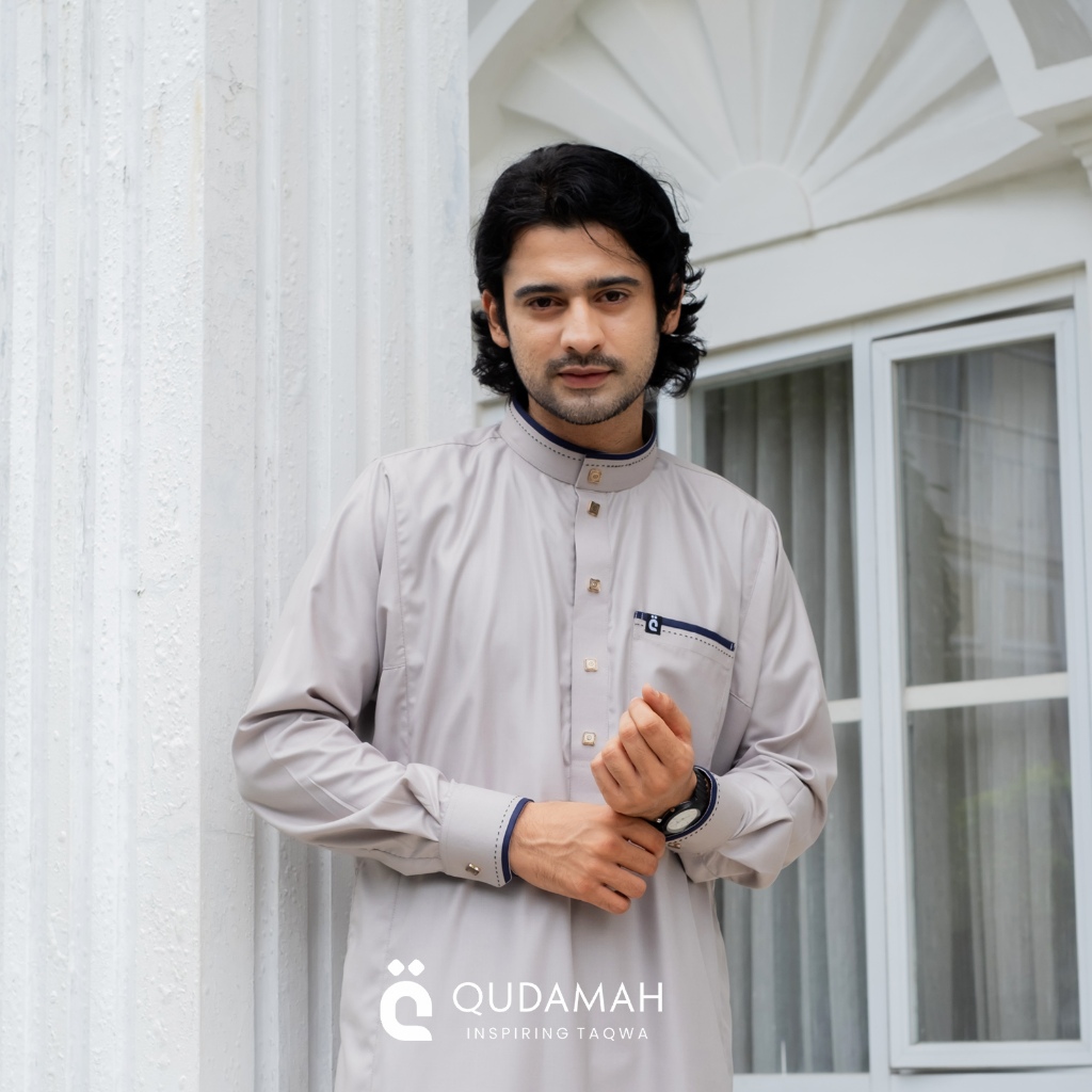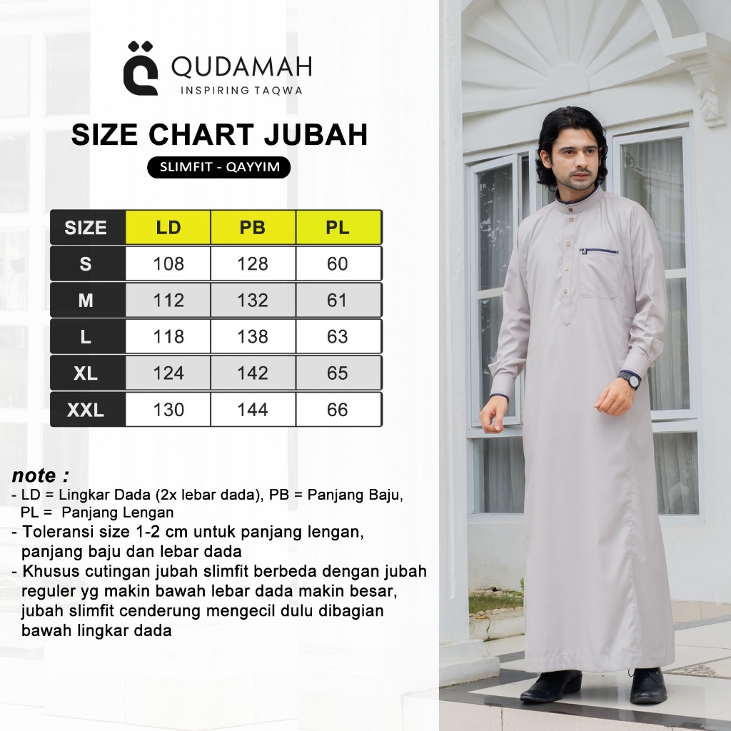 TERLARIS QUDAMAH Jubah Slimfit Qayyim Model Thobe Saudi Pria Lengan Panjang Bermanset Aplikasi Warna Type Kancing Snap B