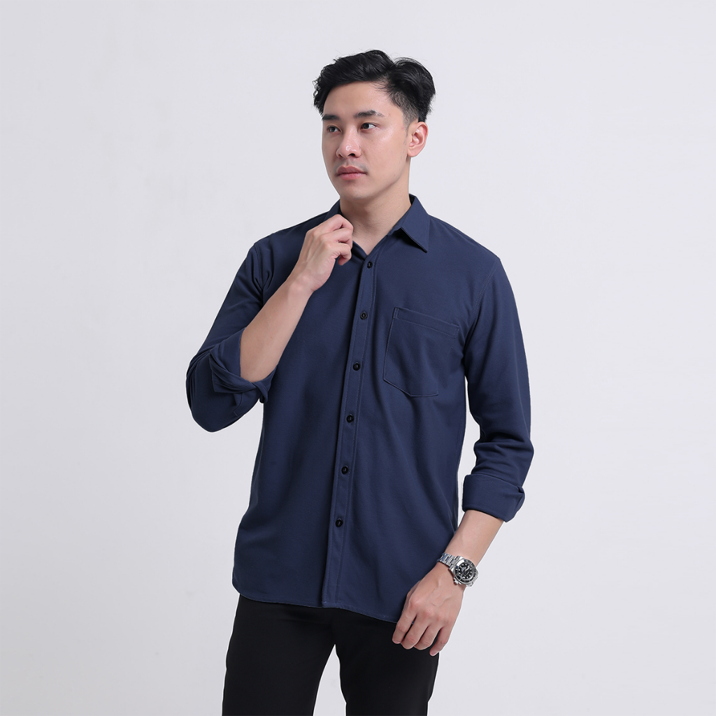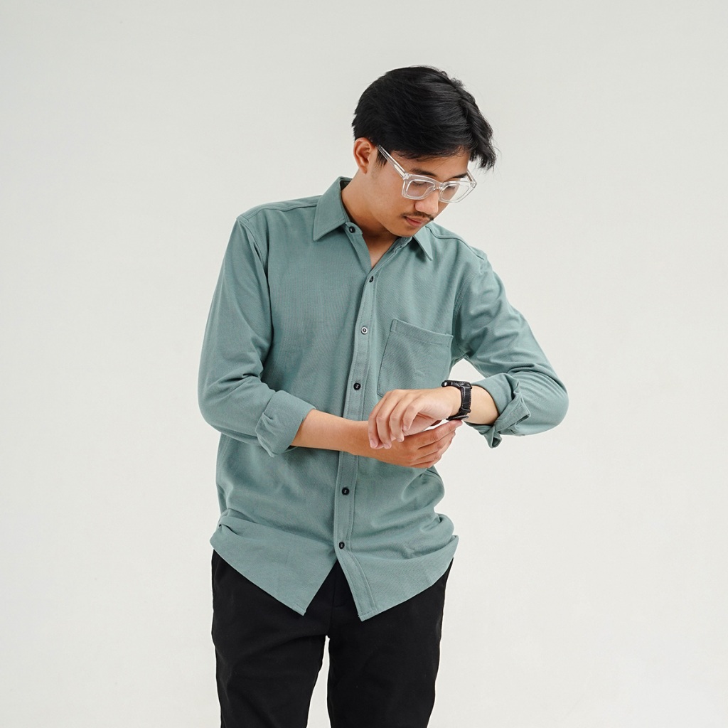 TERLARIS Baju Kemeja Pria Lengan Panjang Cotton Pique