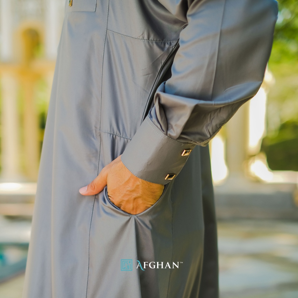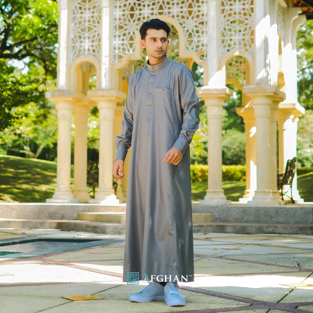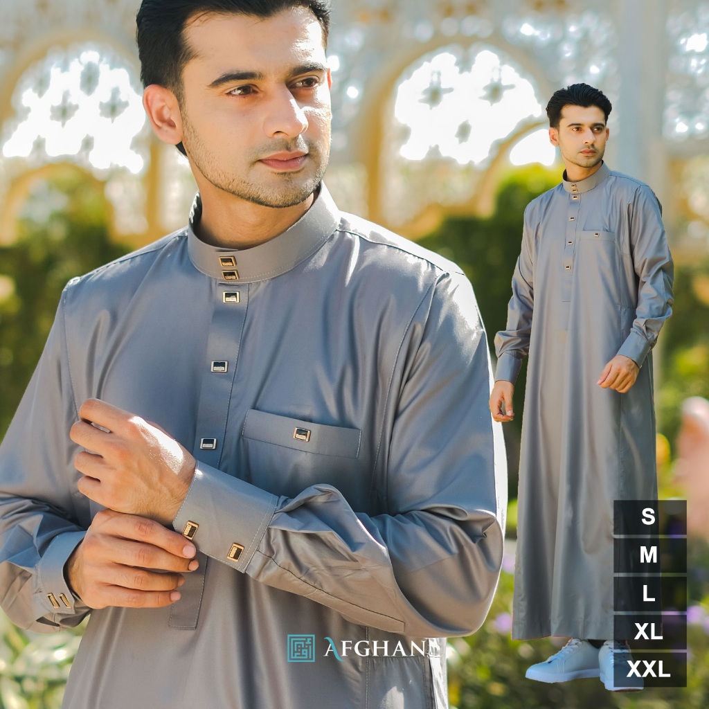 TERLARIS AFGHAN Jubah Arsalan SLIMFIT Model Saudi Lengan Panjang Manset Dengan Kancing Snap Premium, Kerah Tegak Haramai