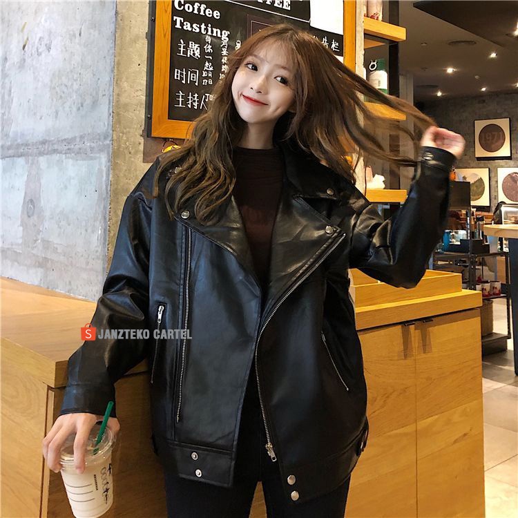 TERLARIS JNK x NYC - Jaket Kulit Oversize Leather Jacket Women Wanita Korean Jumbo Oversized Crop Asli Garut Original Pr