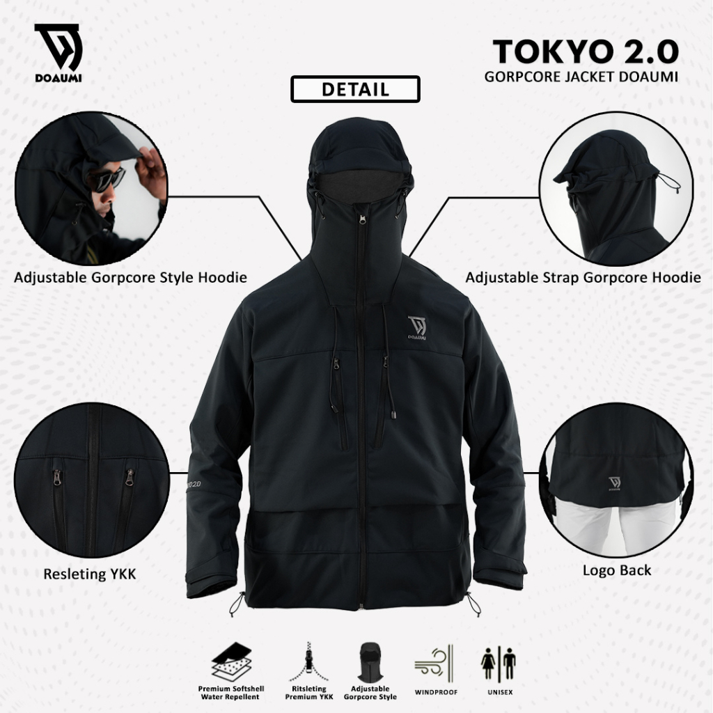 TERLARIS JAKET GUNUNG GORPCORE DOAUMI SOFTSHELL TOKYO 2.0 SERIES JAKET WATEREPLENT HIKING JACKET WINTER OUTDOOR BRETHABL