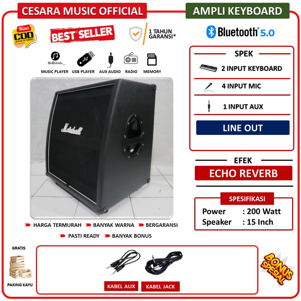 Ampli Keyboard 15 Inch & Drum Elektrik & Vocal bisa untuk karaoke 6 Input Marshall Ada USB Bluetooth