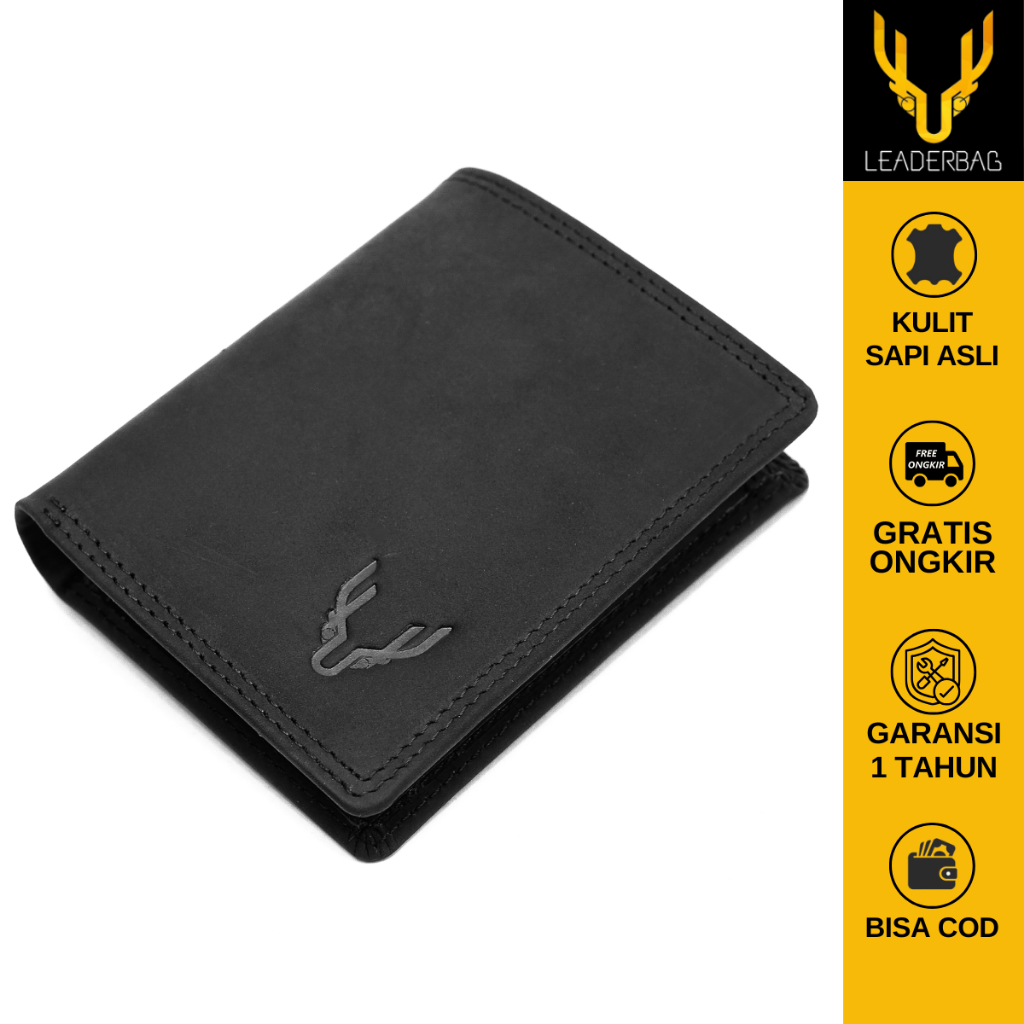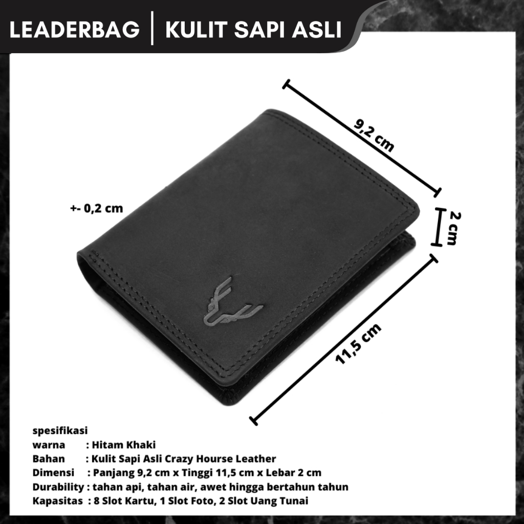 TERLARIS Leaderbag Dompet 3/4 Pria Kulit Sapi Asli Hitam Khaki Premium Terbaru Wallet Kartu Lipat Branded Elegan Crazy H