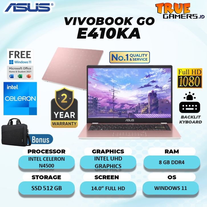 Laptop Asus book GO 14 E410KA Intel N4500 RAM 8GB SSD 512GB Windows Office ORI