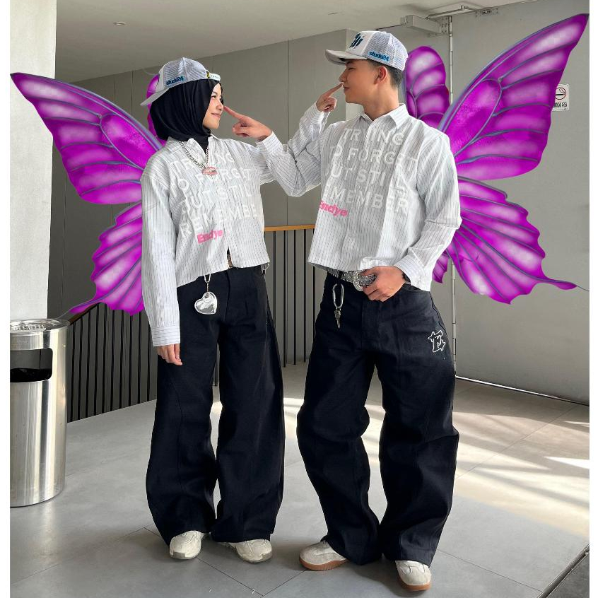TERLARIS Endye.Id - Kemeja Boxy Majestic White WorkShirt Stripe Salur