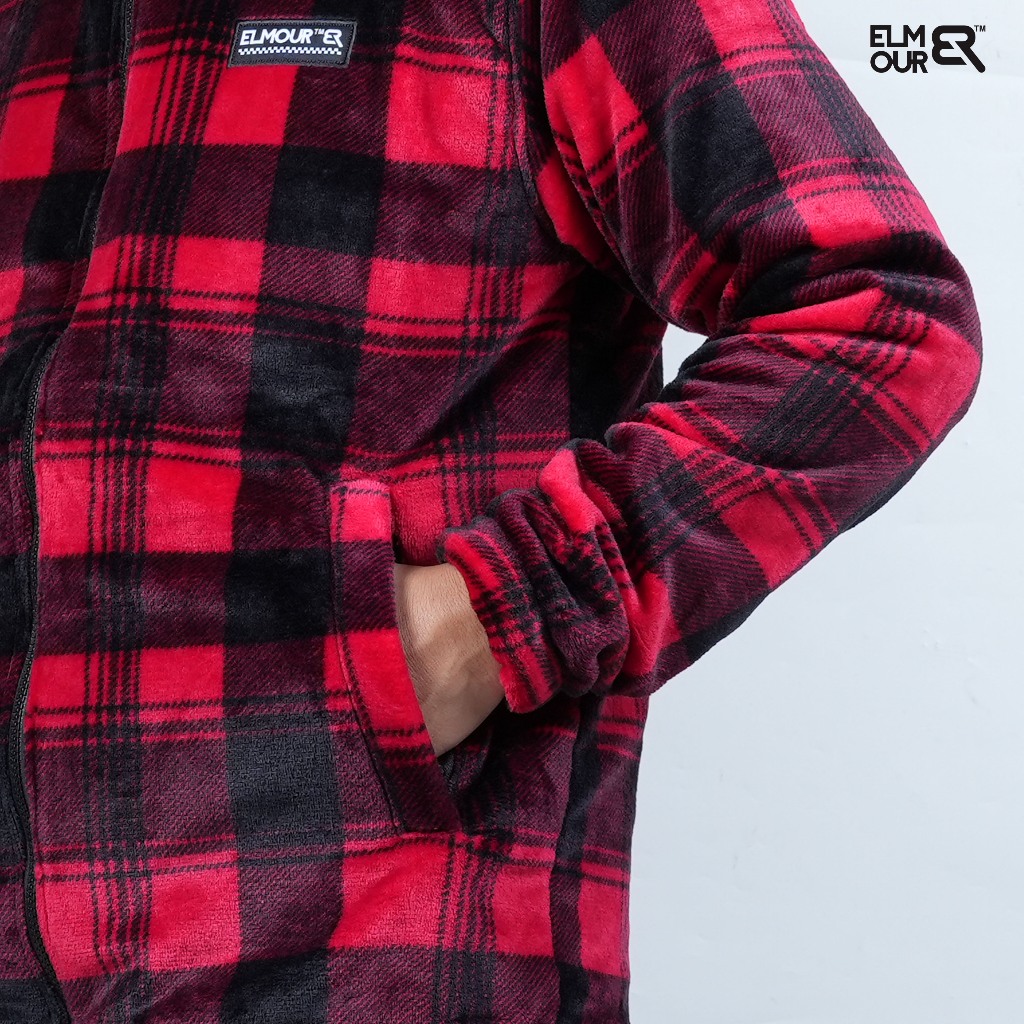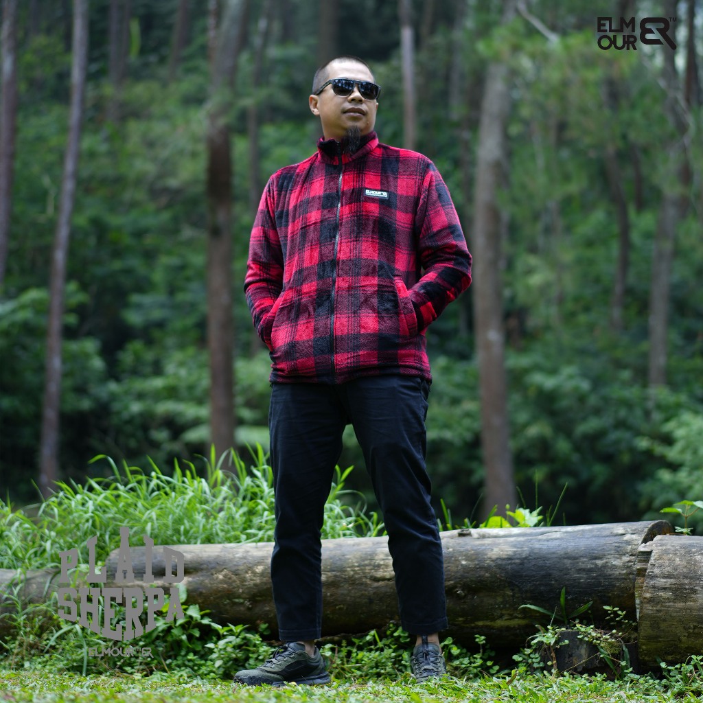 TERLARIS Elmour Jaket Flanel Tebal Red Black Plaid sherpa tebal dan hangat