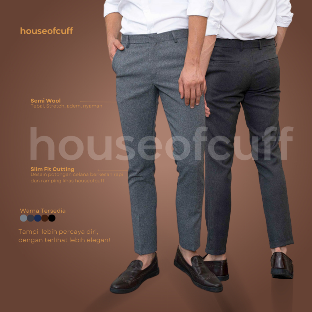 TERLARIS Houseofcuff Celana Bahan Formal kerja kantor hitam polos Slim fit Big Size Black Trouser