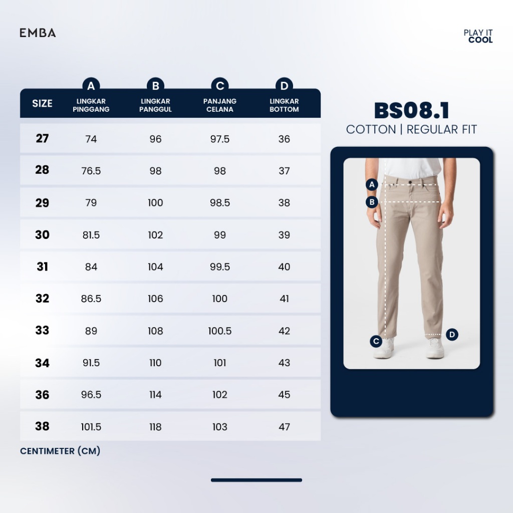TERLARIS Emba Denim - BS08 Katun Twill Celana Panjang Katun Pria Regular Fit Stretch Dark Grey