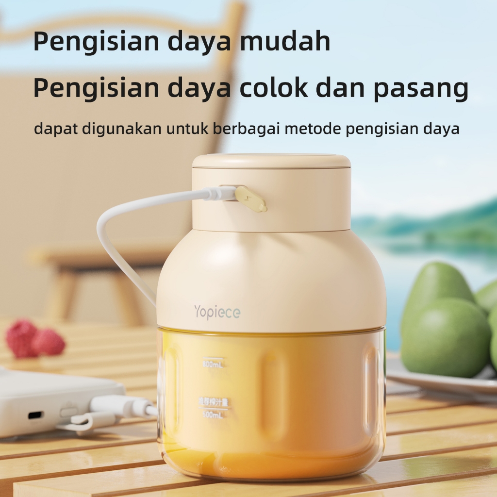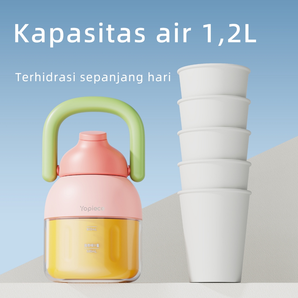 Yopiece Pembuat Jus Portabel, Botol Jus Kapasitas Besar Serbaguna, Tanpa Kabel, Kapasitas Besar 1200Ml, Blender Portabel