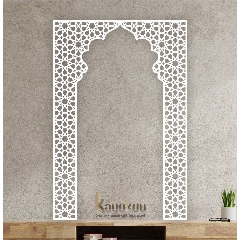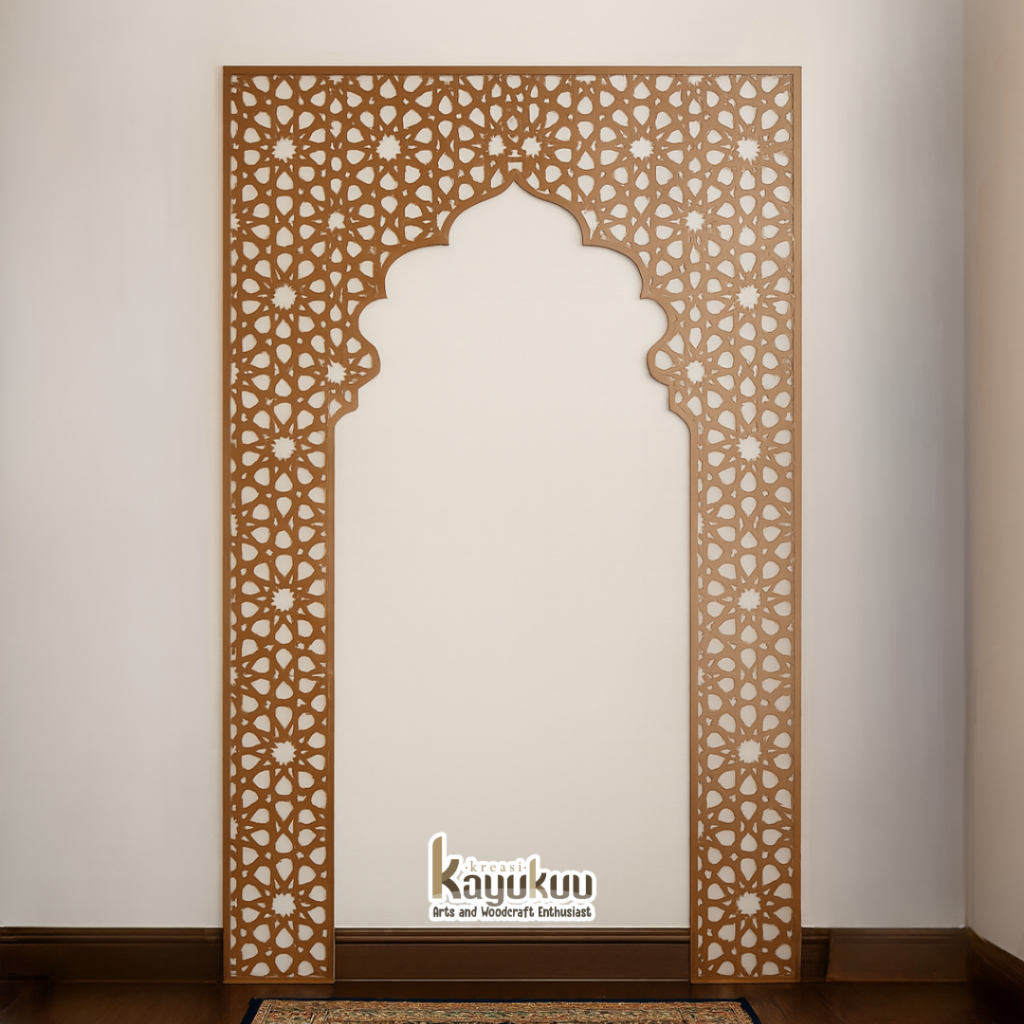 Kreasikayukuu Mihrab Mushola Minimalis Dekorasi Hiasan Dinding Mushola Cutting Plywood 3mm