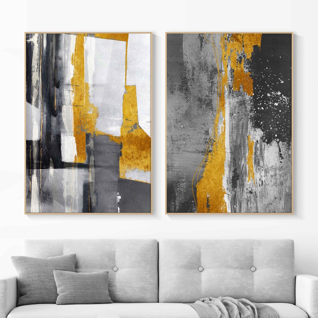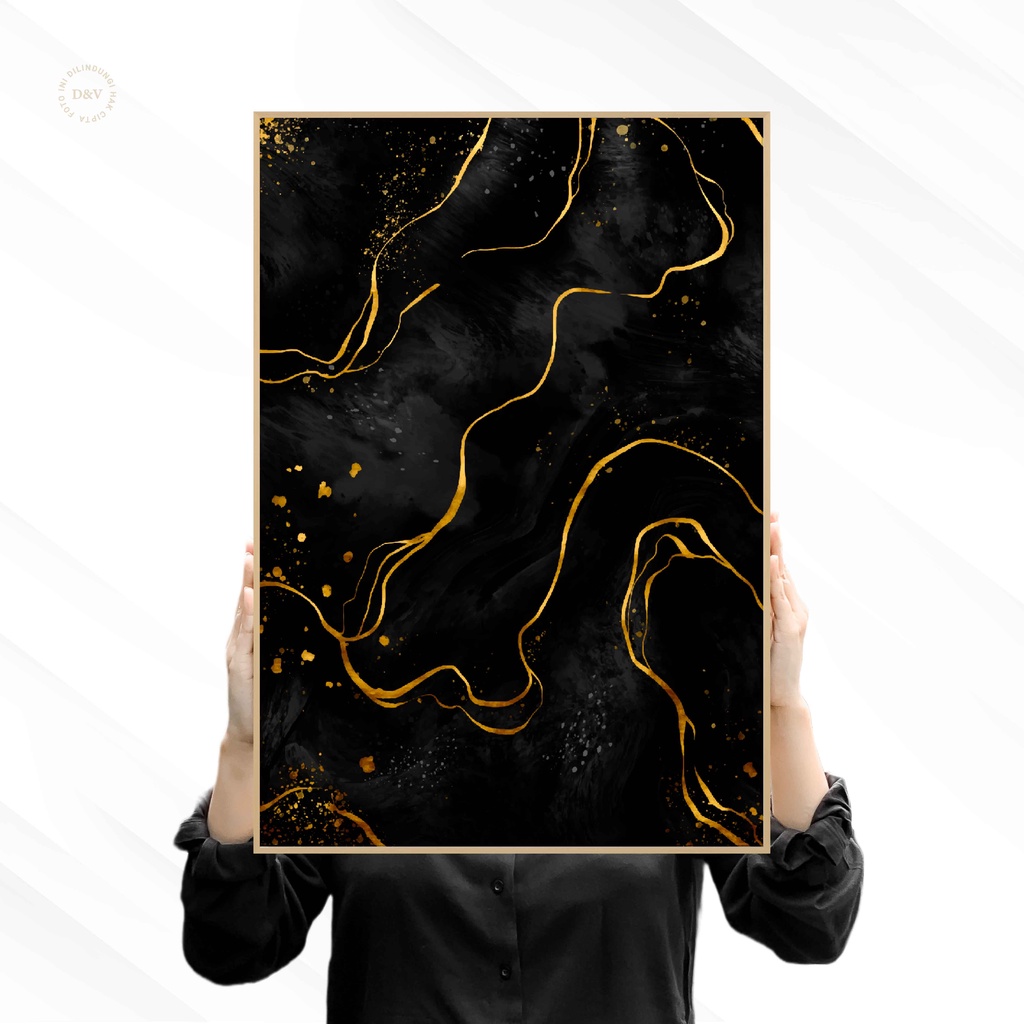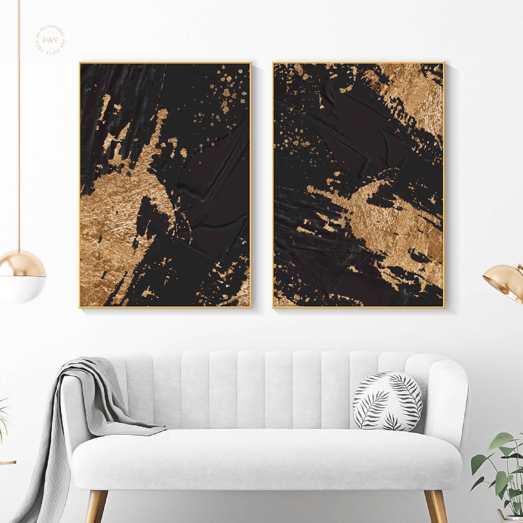 Hiasan Dinding Ruang Tamu Minimalis 80x57cm & 40x57cm INCLUDE FRAME - WALL DECOR FANCY ABSTRACT BLACK AND G-Old DESIGN