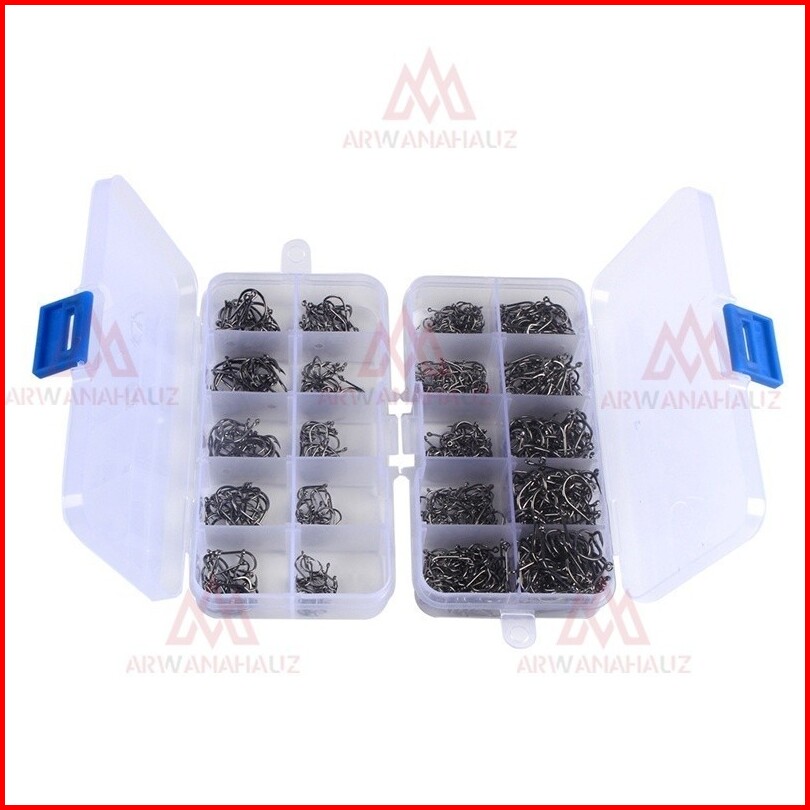 Cod500 Pcs Kail Pancing Aneka Ukuran Bahan Baja Karbon Dengan Tali Pengait 100 1000pcs Fishing Hook Set High-carbon Stee