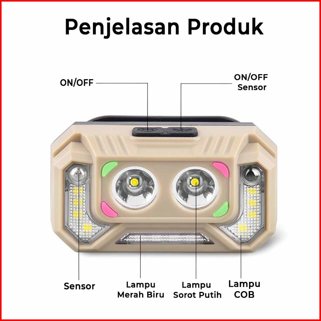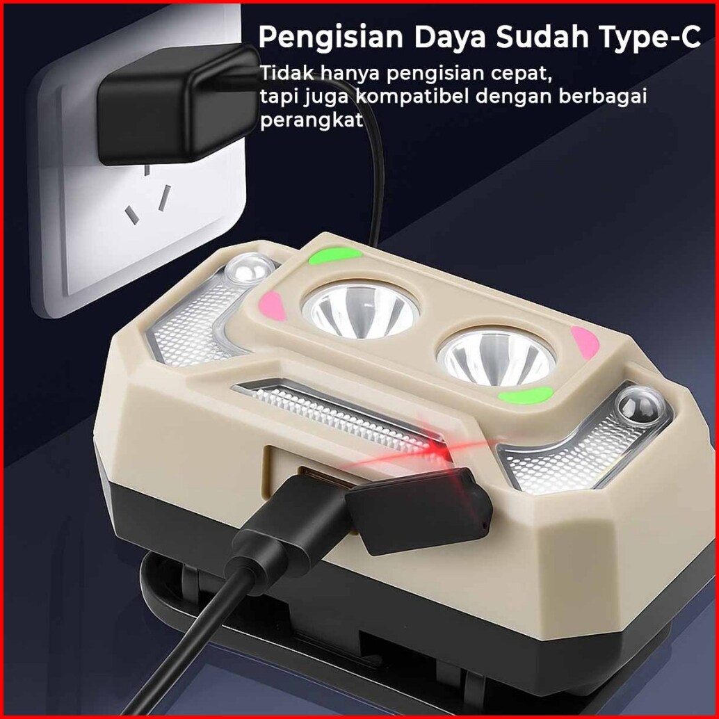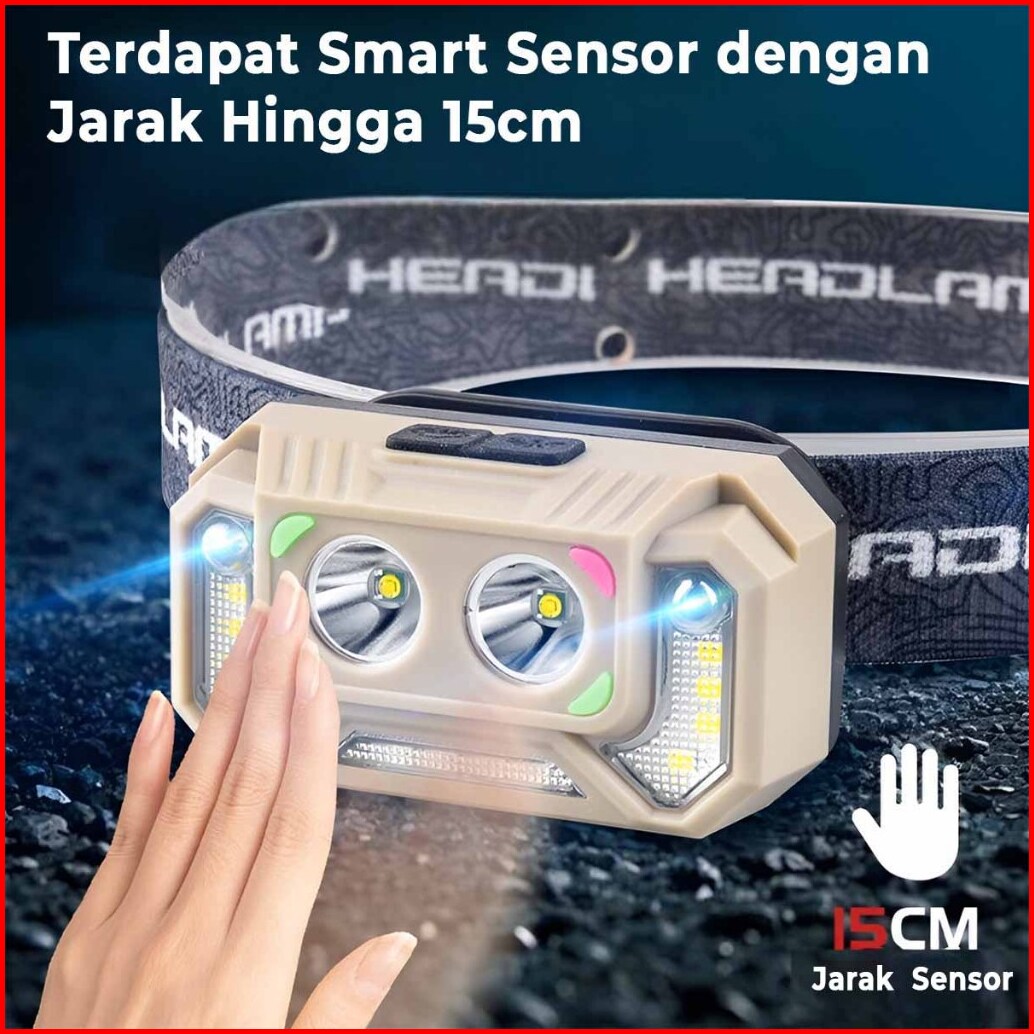 H2s Senter Kepala Sensor Gerak Hs- T129 Led Xpe 5 Mode 1200mah